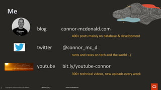 The document discusses Connor McDonald’s expertise and resources related to Oracle Database, with a focus on the Flashback technology for reviewing past database states. It provides technical SQL examples illustrating how to use Flashback features for unit testing and data recovery. Additionally, it touches on practical applications such as querying historical data, handling recent changes, and performing rollbacks to previous database states.
