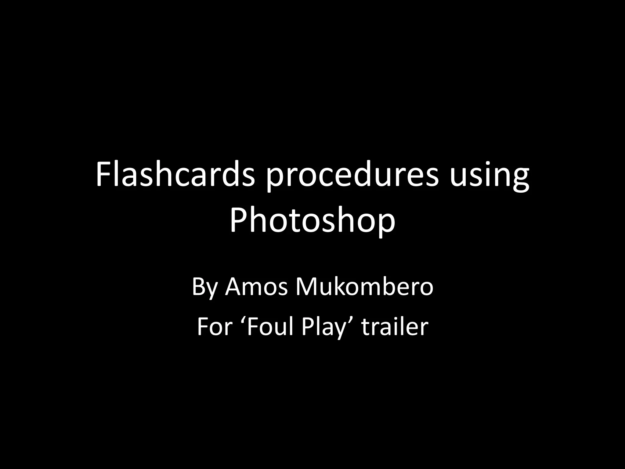 The document describes the process of creating flashcards in Photoshop for a trailer. It involves using different text styles and sizes to construct lines of text on separate layers for editing. Parts of the text are selected using the lasso tool and dragged apart to give a broken look. This process of breaking up the text in a non-identical way was repeated for multiple flashcards.