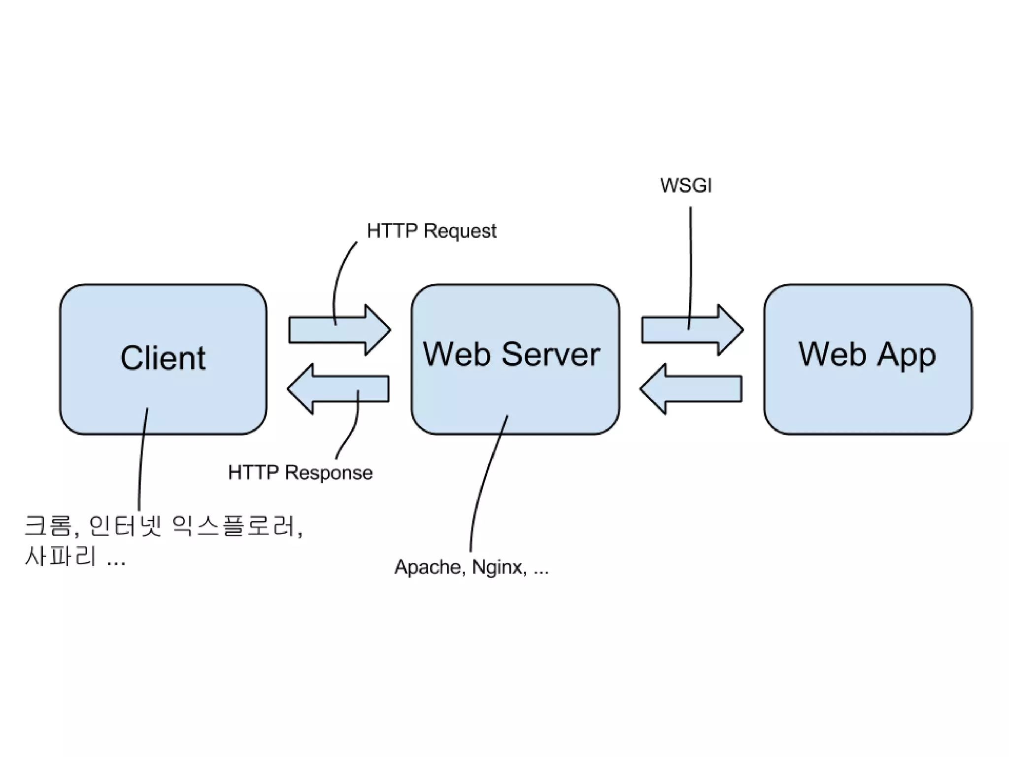 • 웹서버로 온 HTTP Request -> 웹앱 전달