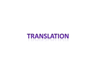 The document describes the process of transcription and translation in a cell. It shows that RNA polymerase unwinds DNA and binds to the promoter region to begin transcribing DNA into mRNA. The mRNA then exits the nucleus into the cytoplasm. In the cytoplasm, the mRNA binds to a ribosome where it is translated into a protein as amino acids are added one by one according to the mRNA codons. The ribosome continues translating until it reaches a stop codon and a completed protein is released.