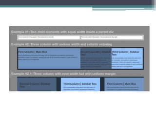This document introduces flexbox, a modern CSS framework designed to simplify website layout and accommodate various screen sizes. It discusses the historical transition from table-based designs to div-based layouts and highlights flexbox's advantages, such as ease of vertical alignment and content ordering. The document also provides practical examples of how to use flexbox for styling and arranging multiple elements in a responsive manner.