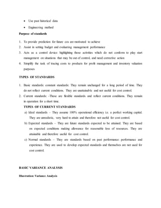 Lamu Ltd. produces biscuits sold through supermarkets with budgeted standards for 2011, including costs for manufacturing, materials, and selling. The actual results showed variations in selling price, material costs, production rate, and fixed costs leading to a need for variance analysis and performance evaluation. The document discusses the establishment of standards, variance analysis methods, and performance appraisal in a decentralized organizational structure, highlighting the importance of measuring divisional performance through financial and non-financial metrics.