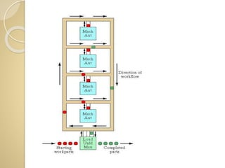 The document discusses flexible manufacturing systems (FMS), highlighting their significance in addressing modern manufacturing challenges such as globalization, cost reduction, and quality improvement. It outlines the various types and layouts of FMS, including single machine cells, flexible manufacturing cells, and complex systems, and emphasizes the importance of flexibility in manufacturing processes. Additionally, it presents the advantages and disadvantages of FMS, as well as its applications in various manufacturing contexts.