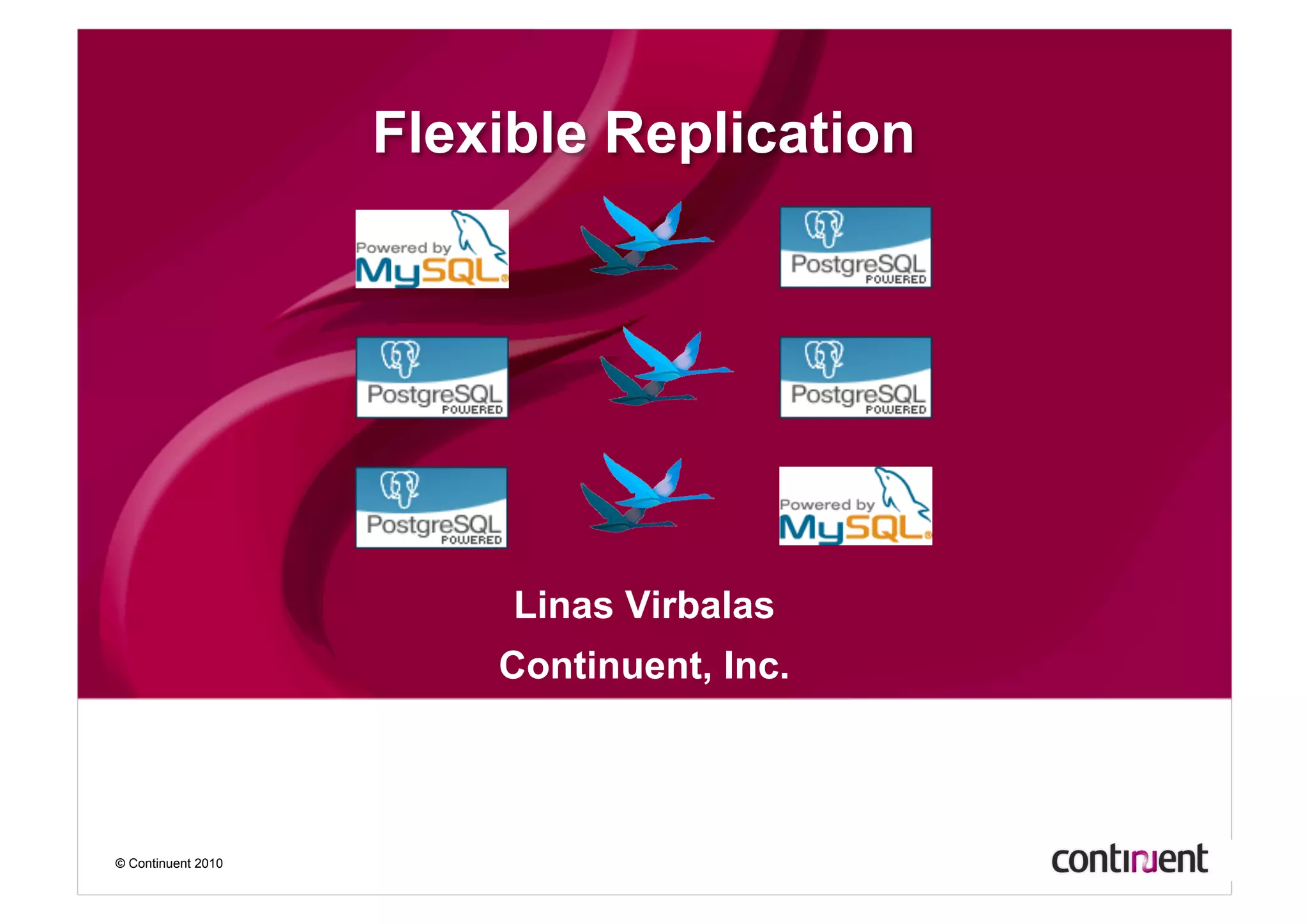 The document discusses heterogeneous replication technology by Continuent, focusing on data integration and migration between different DBMS types, specifically MySQL and PostgreSQL. It highlights the features and benefits of the Tungsten Replicator, including advanced logical replication and the use of filters to manage data type differences. Additionally, it addresses challenges such as SQL dialect discrepancies and provides examples of replication methodologies.