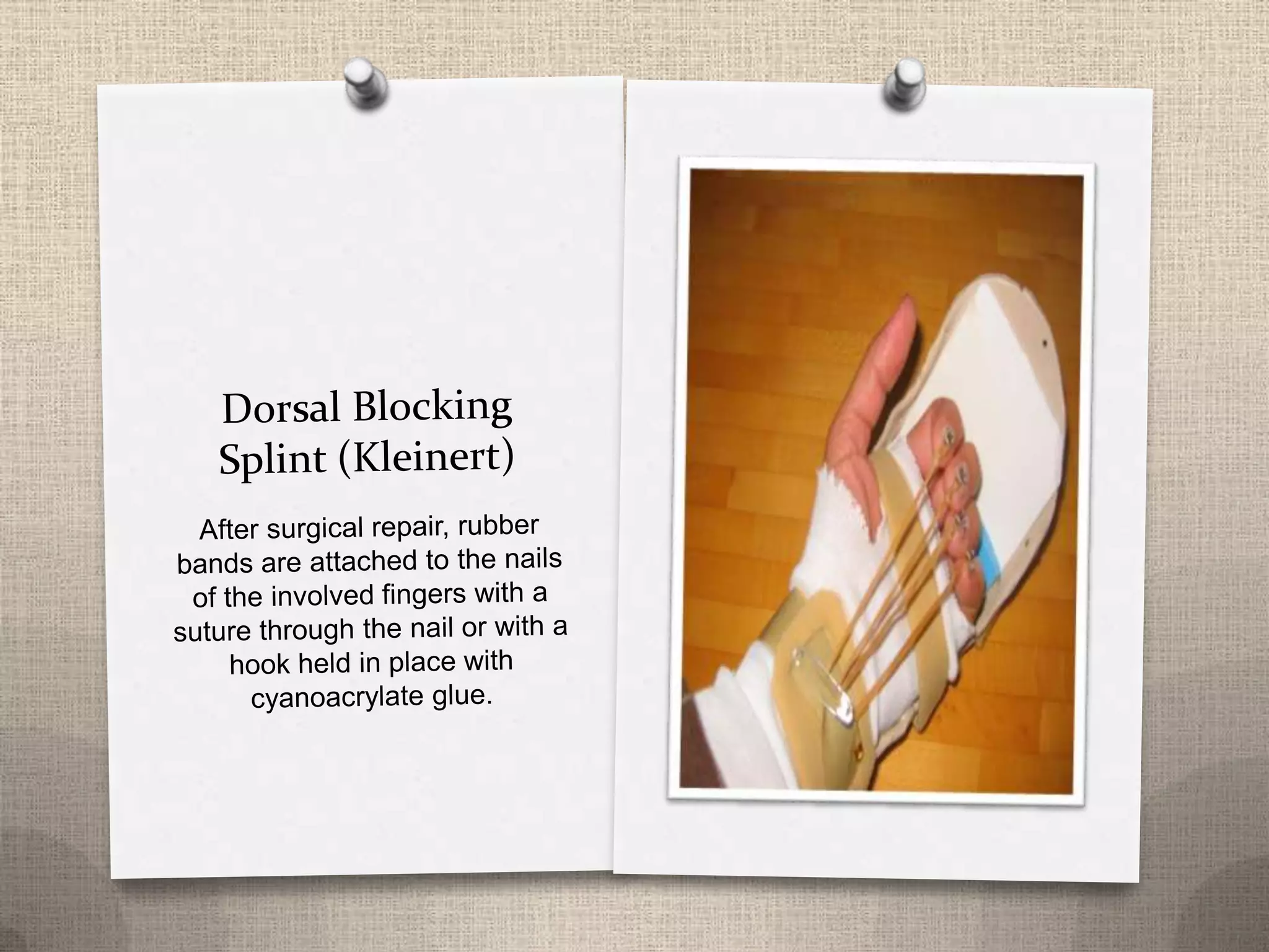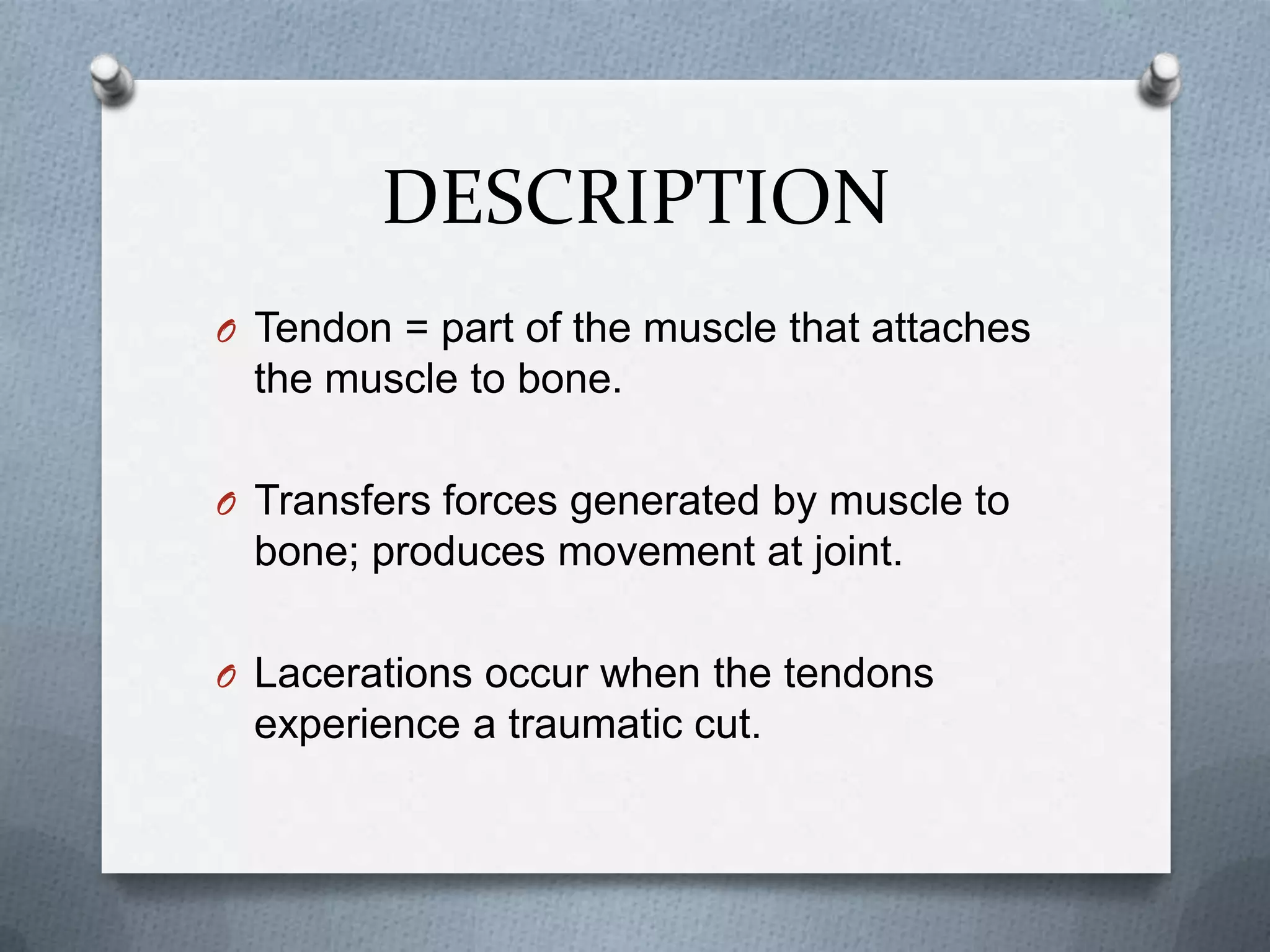 The document discusses flexor and extensor tendon lacerations, covering anatomy, causes, signs, and rehabilitation approaches post-injury. It outlines management strategies for both types of tendon injuries, including treatment protocols and occupational therapy interventions to restore function. Prognosis depends on various factors, including the severity of injury and compliance with rehabilitation protocols.