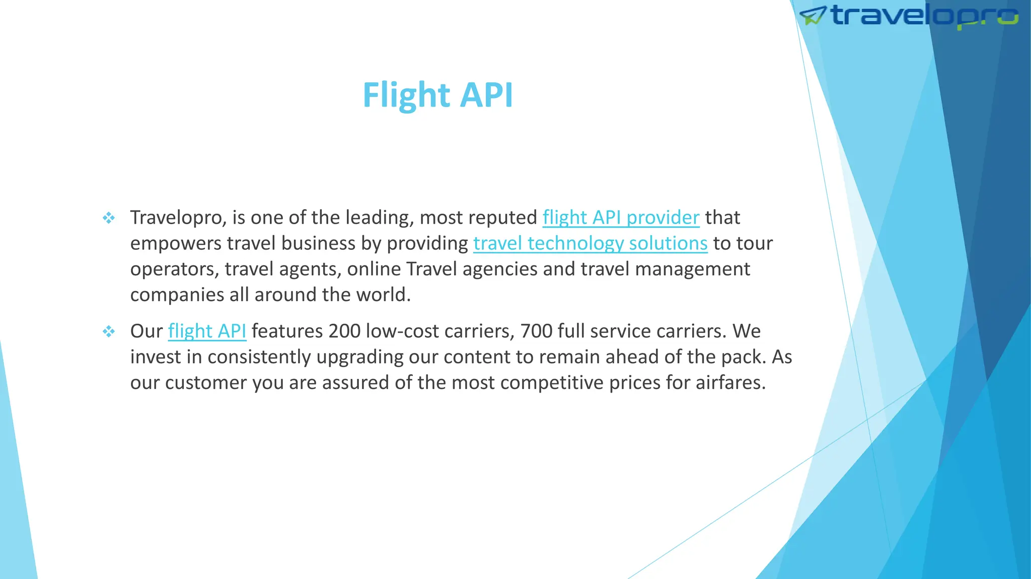 Travelopro offers a comprehensive flight API that empowers travel businesses by providing innovative technology solutions, allowing online ticket booking for over 200 low-cost and 700 full-service carriers. The API enhances operational efficiency, increases revenues, and supports custom integration to various devices, accommodating diverse business needs. By connecting travel agents and customers globally, it improves market reach and boosts website traffic through real-time booking capabilities.