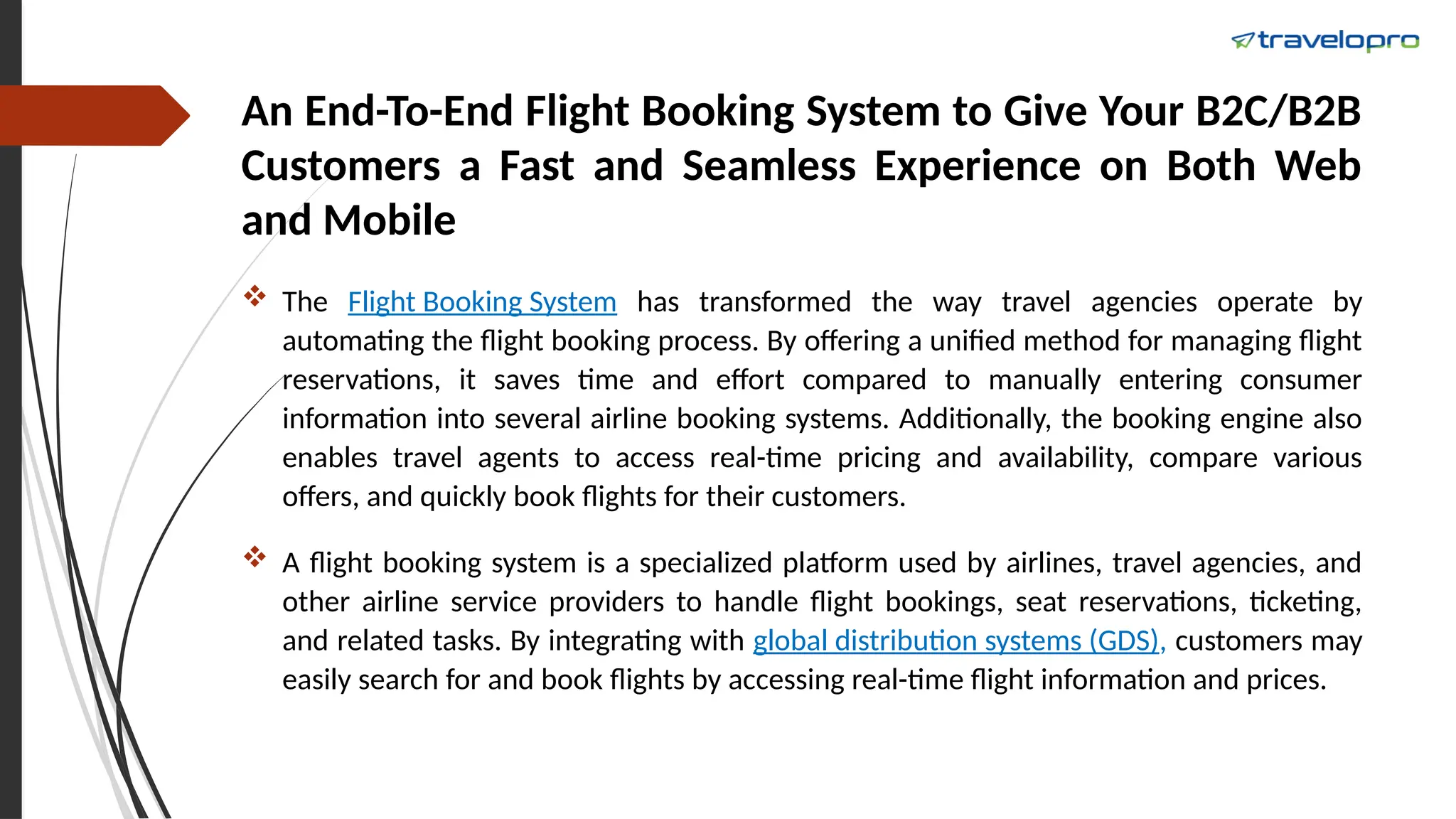 Searching for the best flight booking system? Look no further – Travelopro provides the flight booking system has the best prices and the most dependable flights. Get the best value for your money with our unrivalled flight booking software today. One of the pioneers in the travel technology industry is Travelopro. Being a top supplier of travel services, we provide airline reservation systems that integrate GDS APIs, such as Travelport, Amadeus, Galileo, Sabre, and others. Additionally, we provide airline reservation systems that integrate third-party APIs, such as Yatra Akbar Travels Online and Travel Boutique Online. For more details, Pls visit our website: https://www.travelopro.com/flight-booking-system.php