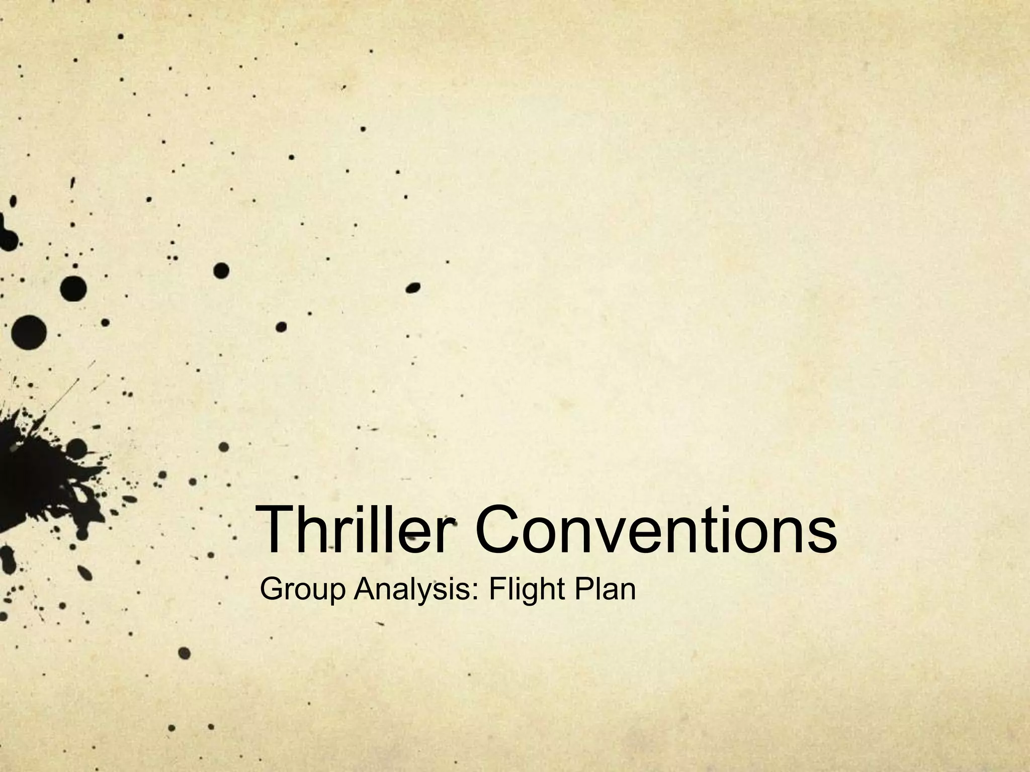 The document analyzes the opening scenes of the 2005 thriller film Flightplan. It describes how the opening establishes an eerie atmosphere through the use of an empty train, dark lighting, ambient music and isolation of the main character. It discusses how specific shots like the identification of a body and ravens flying off alone in the snow further unsettle the audience. The analysis concludes the opening is effective at drawing the audience in with mystery and generating an unsettling feeling through its conventions of thriller films.