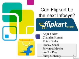 Flipkart is an Indian electronic commerce company headquartered in Bangalore that was founded in 2007 by Sachin Bansal and Binny Bansal. It has grown to a valuation of $7 billion but remains unprofitable. The document discusses Flipkart's success factors such as being a first mover and entering the market at the right time. It faces challenges of lack of competitive advantage, customer loyalty, and competition from Amazon, Snapdeal and others. The document recommends Flipkart educate customers, expand globally and rurally, improve marketing, and offer more discounts.