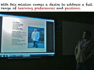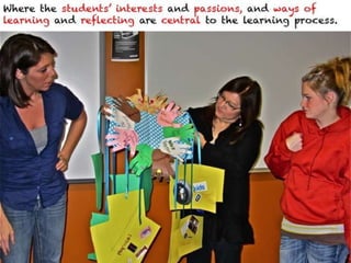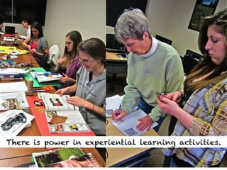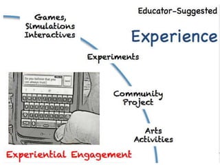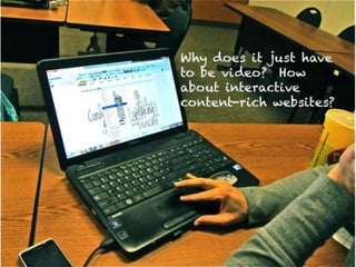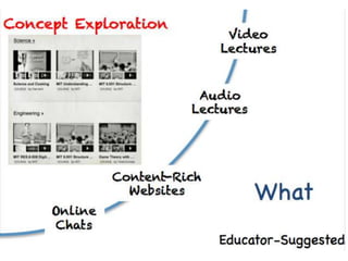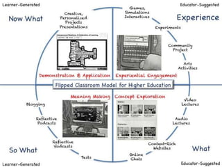 The document discusses the concept of a flipped classroom, emphasizing the importance of delivering on-demand content to facilitate active learning. It highlights the role of educators as mentors rather than traditional lecturers and advocates for experiential learning activities to engage students effectively. The text also notes the accessibility of expert resources and the necessity for a shift in teaching methods to enhance student engagement and learning outcomes.