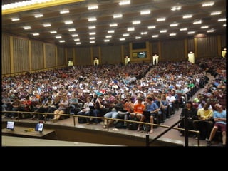 Professor John Boyer and technical assistant Katie Pritchard present a 'flipped syllabus' approach to teaching that emphasizes student mastery and ownership over learning, particularly effective in large classrooms. This method focuses on point accumulation and flexibility in assignments, allowing students to demonstrate knowledge in diverse and creative ways, while fostering engagement through social networking technologies. The model promotes a learner-centered environment, encouraging accountability and adapting to various learning styles and schedules.
