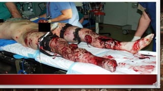 The document outlines the concept of 'floating knee' injuries, characterized by concurrent fractures of the femur and tibia, often resulting from high-energy trauma. It discusses the Fraser classification of these injuries, the significance of thorough clinical examinations, and management protocols, including advanced trauma life support. Emphasis is placed on the necessity for early stabilization and comprehensive treatment of associated injuries to improve patient outcomes.