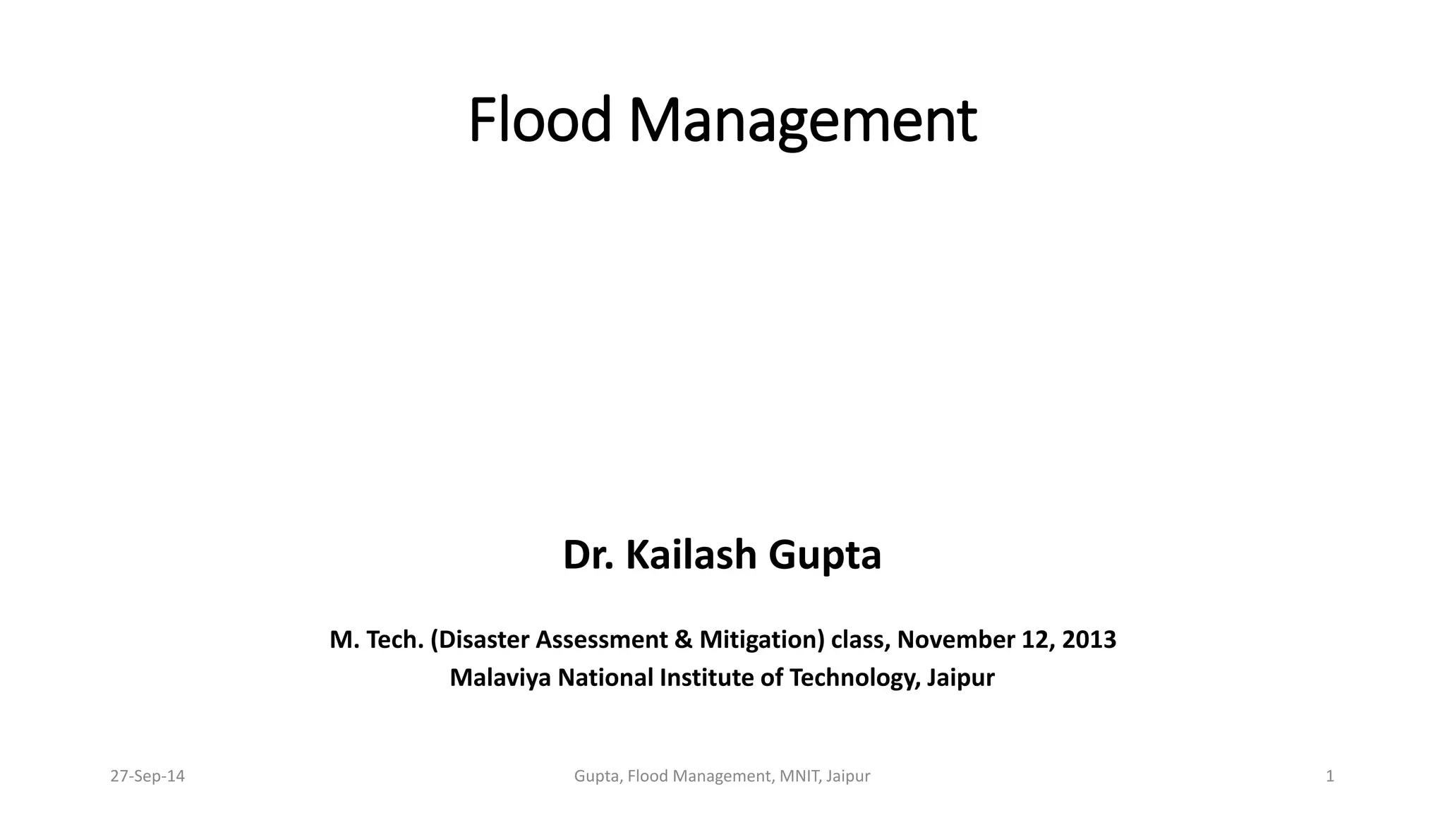 The document discusses flood management in India. It outlines the significance of flood management, describing various types of floods and their causes. It notes that India is highly vulnerable to floods, which can have devastating effects. The document then covers India's flood management plan, including forecasting, mitigation efforts, and case studies. Structural measures like dams and non-structural measures like insurance and education are discussed.