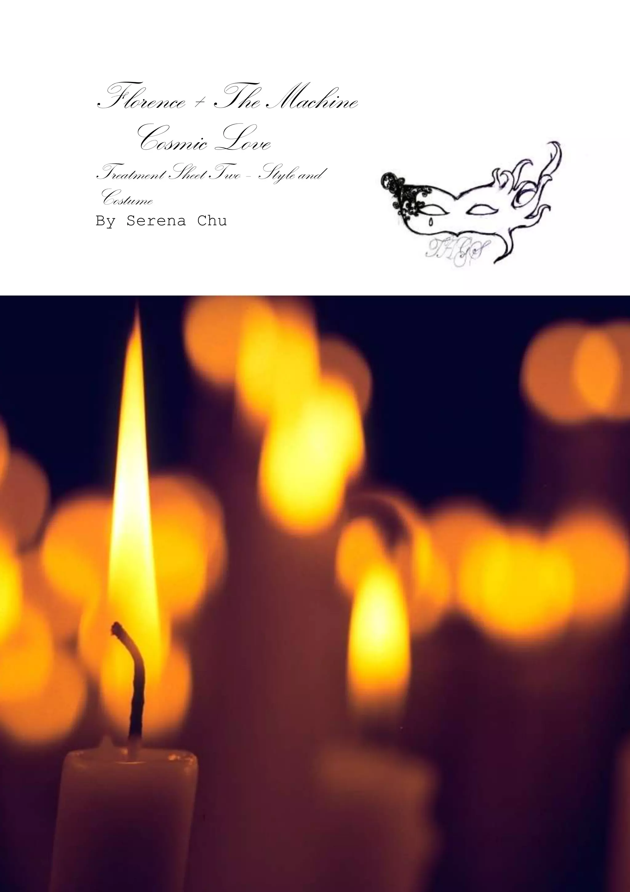 This document provides a treatment sheet for the costume and makeup for a music video featuring Hayley portraying Florence + The Machine's song "Cosmic Love." For the narrative scenes, Hayley will wear a dark Victorian-era dress and flats to create a mysterious atmosphere. For the performance scenes, she will wear a tight, white, sexy dress to represent expressing herself and breaking free from rules. Her makeup will be natural for the narrative and feature a smoky eye and bright red lip for the performance to look powerful.