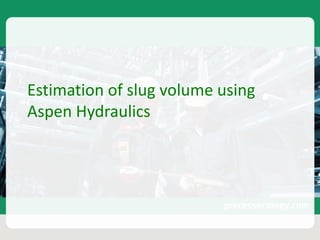 This document outlines a case study on estimating slug volume and duration in a natural gas pipeline, focusing on the impact of heavy fractions and different slugging types. Using various methodologies, including Aspen HYSYS hydraulic analysis, the project aimed to predict slug behavior based on gas composition and operating conditions. Sensitivity analysis indicated that the design size for a slug catcher should be conservative, potentially limiting vessel size to around 1,000 bbl.