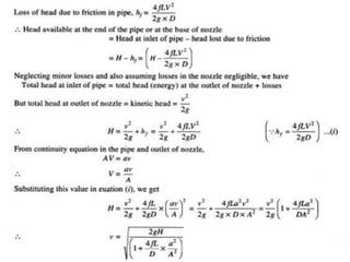 - Flow through branched pipes, analyzing discharge at pipe junctions using continuity and Bernoulli's equations.