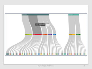 The document discusses DynMX Supply Chain Apps which provide visualization and analysis tools for supply chain optimization. The apps allow users to perform ABC analysis to classify stock articles based on value, create Sankey diagrams to visualize product flows showing quantities and values, and analyze supply chain data to gain insights. The analysis can be done independently using the apps or contracted through Act2Vision who provides the tools and performs the analyses.