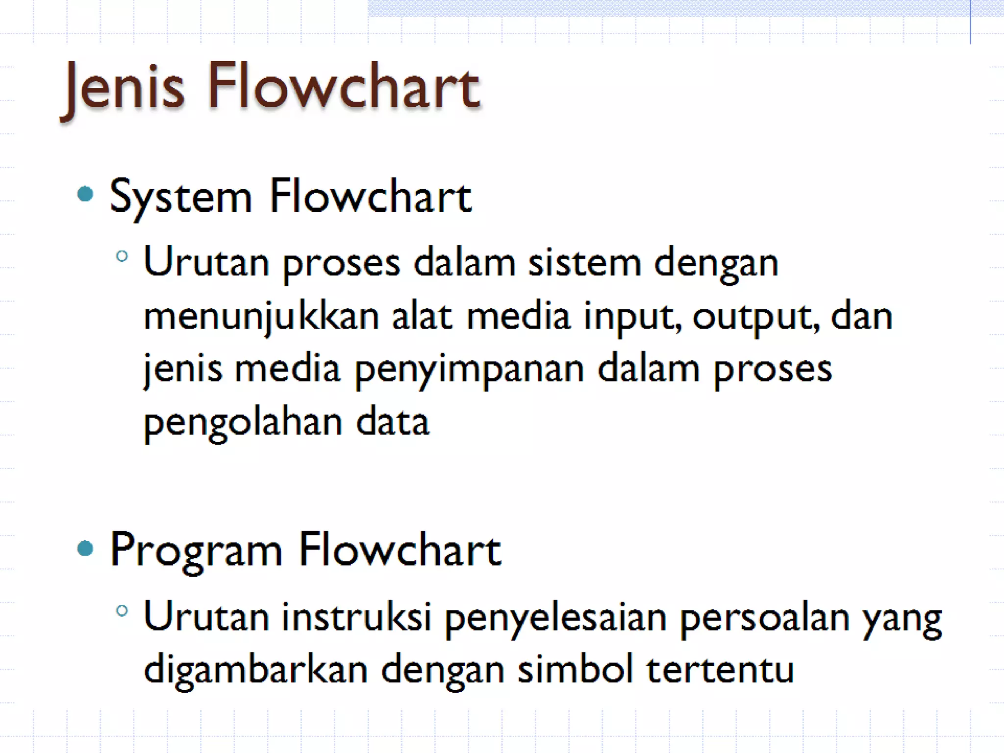Dokumen ini membahas teknologi informasi, khususnya mengenai alur proses dan penggunaan flowchart dalam pemecahan masalah dengan komputer. Terdapat penjelasan tentang algoritma, flowchart, serta simbol-simbol yang digunakan dalam membuat flowchart, yang berfungsi untuk menggambarkan urutan langkah dalam memecahkan masalah. Flowchart juga dipandang sebagai alat yang efektif untuk memperjelas komunikasi antara programmer dan pengguna bisnis.