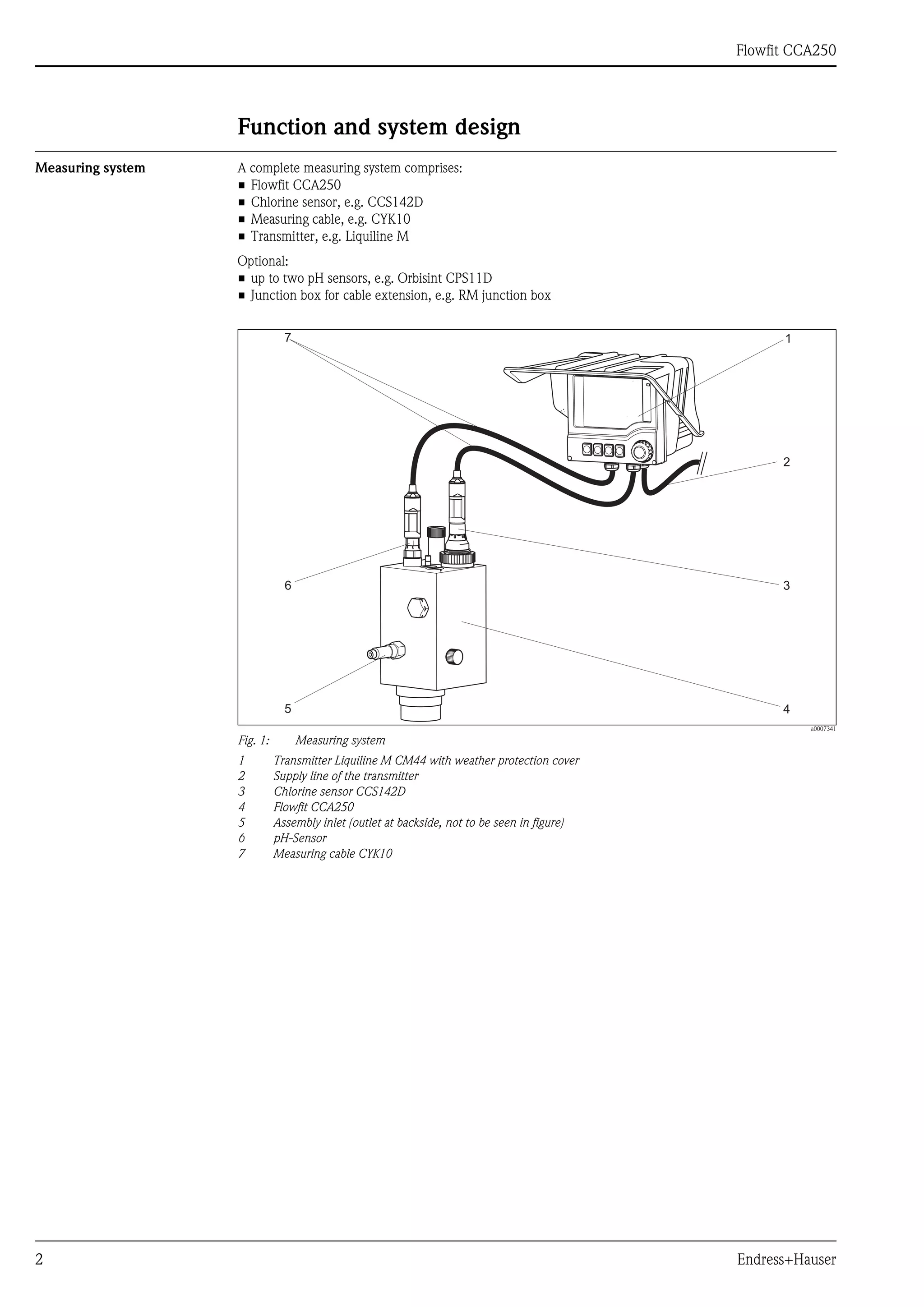 The document provides technical information on the Flowfit CCA250 flow assembly, designed for chlorine and pH/ORP sensors in applications like drinking water and swimming pool water. It includes installation instructions, features such as adjustable flow control, and a comprehensive list of suitable sensors and accessories. The assembly supports a range of operating conditions and is constructed from durable materials to ensure reliable performance.