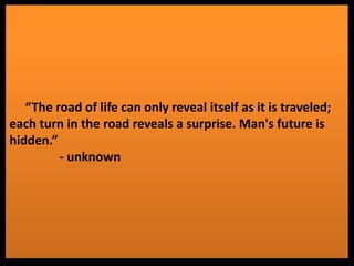 The document describes the narrator's life journey from playing football as a child through college and deciding to study games at Full Sail University. Key experiences included moving to a new city during high school, learning discipline through football, earning a college scholarship, and adapting to the transition to university. The narrator aims to continuously improve, learn from others, and find ways to stand out in their field of study.
