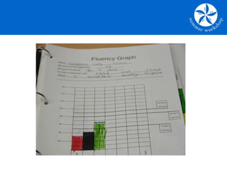 The document discusses building reading fluency in students. It defines fluency as the ability to read accurately, quickly, and with proper expression. Several factors can inhibit fluency, including unfamiliarity with text, limited vocabulary, and decoding difficulties. The document recommends assessing fluency through timed readings and error counts, and providing explicit instruction in decoding skills, repeated readings, and partner reading to help students improve their fluency.