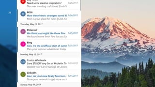 The document outlines a schedule of sessions focused on fluent design and modernizing desktop applications for Windows 10, featuring various speakers and topics. Sessions include building applications with new windowing APIs, embracing design iteration, and utilizing AI with Windows Ink. The schedule spans multiple days with breakout and theater sessions exploring innovative experiences and development tools.