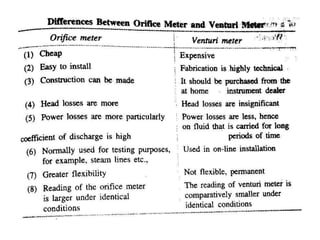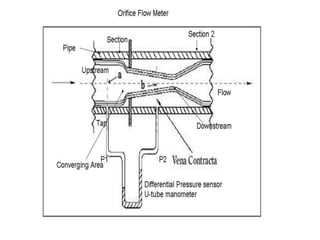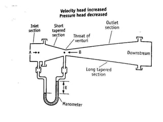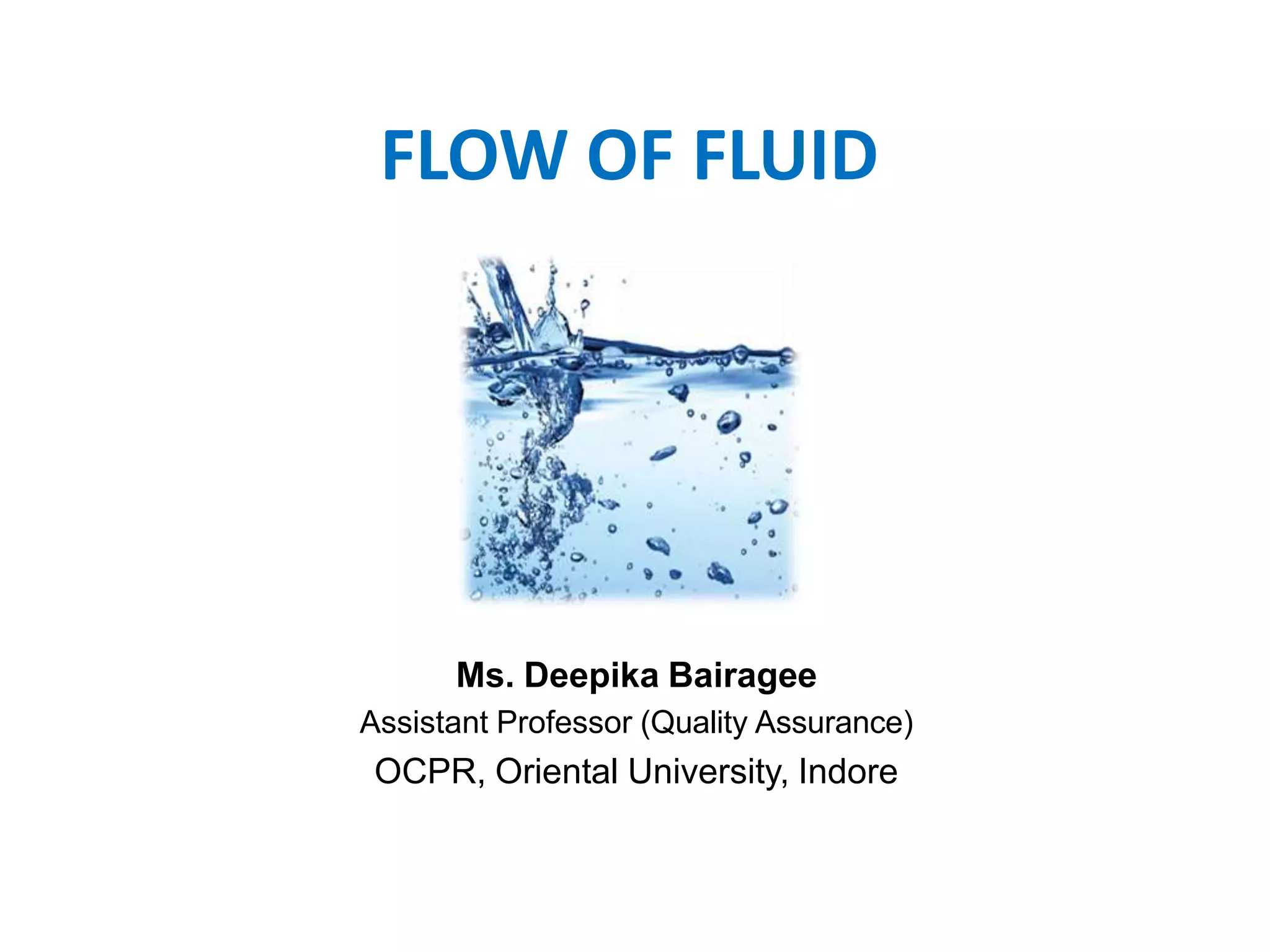The document provides a comprehensive overview of fluid flow concepts, including definitions, properties, and measurements used in fluid dynamics and statics. It details various tools like manometers, orificemeters, and Venturi meters, along with fundamental principles such as Reynolds number and Bernoulli's theorem. Emphasis is placed on the significance of viscosity, surface tension, and the flow behavior of fluids in different applications, especially in pharmaceutical manufacturing.