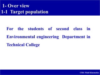 1. The document presents an overview of a training package on fluid kinematics for students of environmental engineering.