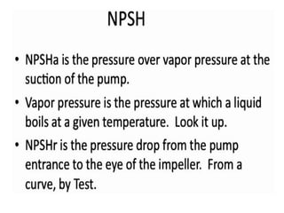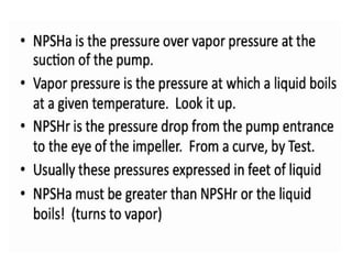 The document provides an overview of fluid mechanics and pumping systems relevant to chemical engineering, focusing on various components and principles of pumps, particularly centrifugal pumps. It describes the functions of key parts like impellers, shafts, and seals, and explains concepts such as head pressure, static head, and friction head, along with issues like cavitation and vapor lock. Lastly, it outlines the methods to handle vapor lock conditions in pumps to ensure effective operation.