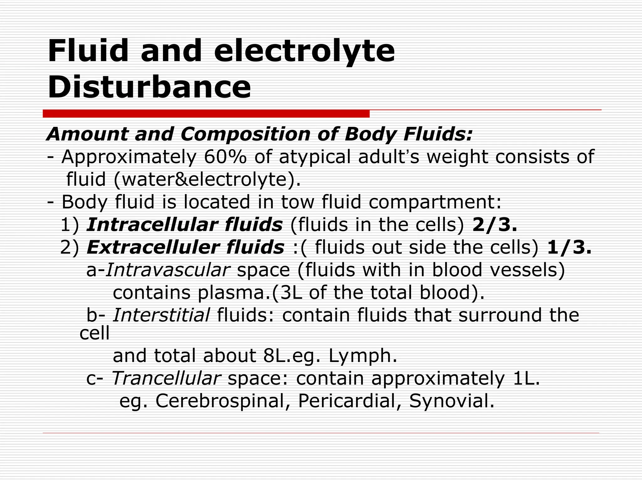 2) Extracelluler fluids :( fluids out side the cells) 1/3.