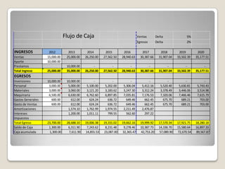 This document contains cash flow analyses for a construction company from 2012 to 2020. It shows projected income from sales and loans, expenses for personnel, materials, machinery, and other costs. It also includes a loan amortization schedule and graphs showing the balance of cash and accumulated cash over time. The analyses project steady income growth from sales each year and a gradual increase in the balance and accumulation of cash in the company's accounts.