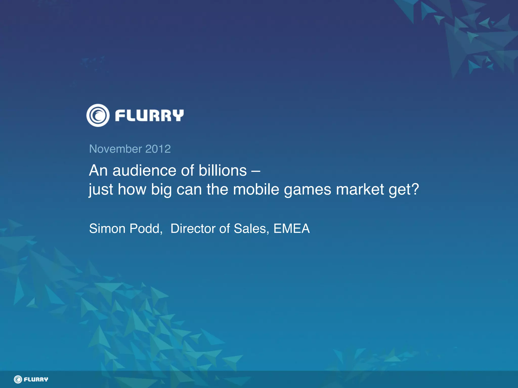 This document discusses the growth of the mobile games market and analyzes usage trends across smartphones, tablets, and platforms. Some key points: