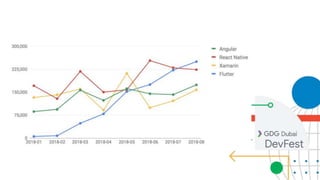Flutter allows building beautiful native apps for iOS and Android from a single codebase. It uses Skia for rendering and widgets as basic building blocks. Dart is the programming language used, which is easy to learn and supports JIT and AOT compilation. Everything in Flutter is represented as a widget, from structural elements to layout properties. Widgets are composed together rather than using inheritance. Stateful widgets create State objects that can rebuild when the state changes. Flutter focuses on composition over inheritance and uses widgets as the fundamental building blocks.