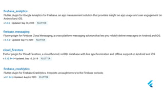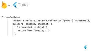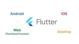This document provides an overview of Flutter, Google's UI toolkit for building mobile, web, and desktop apps from a single codebase. It discusses key Flutter concepts like everything being a widget, the widget tree and how widgets rebuild, different types of widgets, managing state and data flow, common state management packages like Provider and Bloc, using streams for realtime data, integrating with Firebase, and security rules. It also promotes Flutter's abilities like beautiful animations, fast development speed, and support for different platforms from a single codebase.