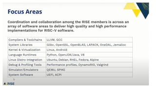 The document discusses the RISC-V architecture, highlighting its significance as an open standard instruction set architecture that fosters innovation. It details the current state of Dart programming language support on RISC-V and outlines future plans for Android and Dart development on this platform. The document concludes with a call to action for developers to experiment with Dart on RISC-V using available emulation tools.