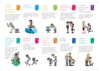 Il documento presenta un sito dedicato alla sicurezza informatica, www.sicurionline.it, dove sono disponibili consigli e strumenti per navigare in modo sicuro. È stato elaborato un decalogo di regole da seguire per proteggere i dati personali, evitare truffe online e garantire la sicurezza durante la condivisione di informazioni. Vengono enfatizzati comportamenti sicuri da adottare su Internet, come l'uso di antivirus e la cura della reputazione online.