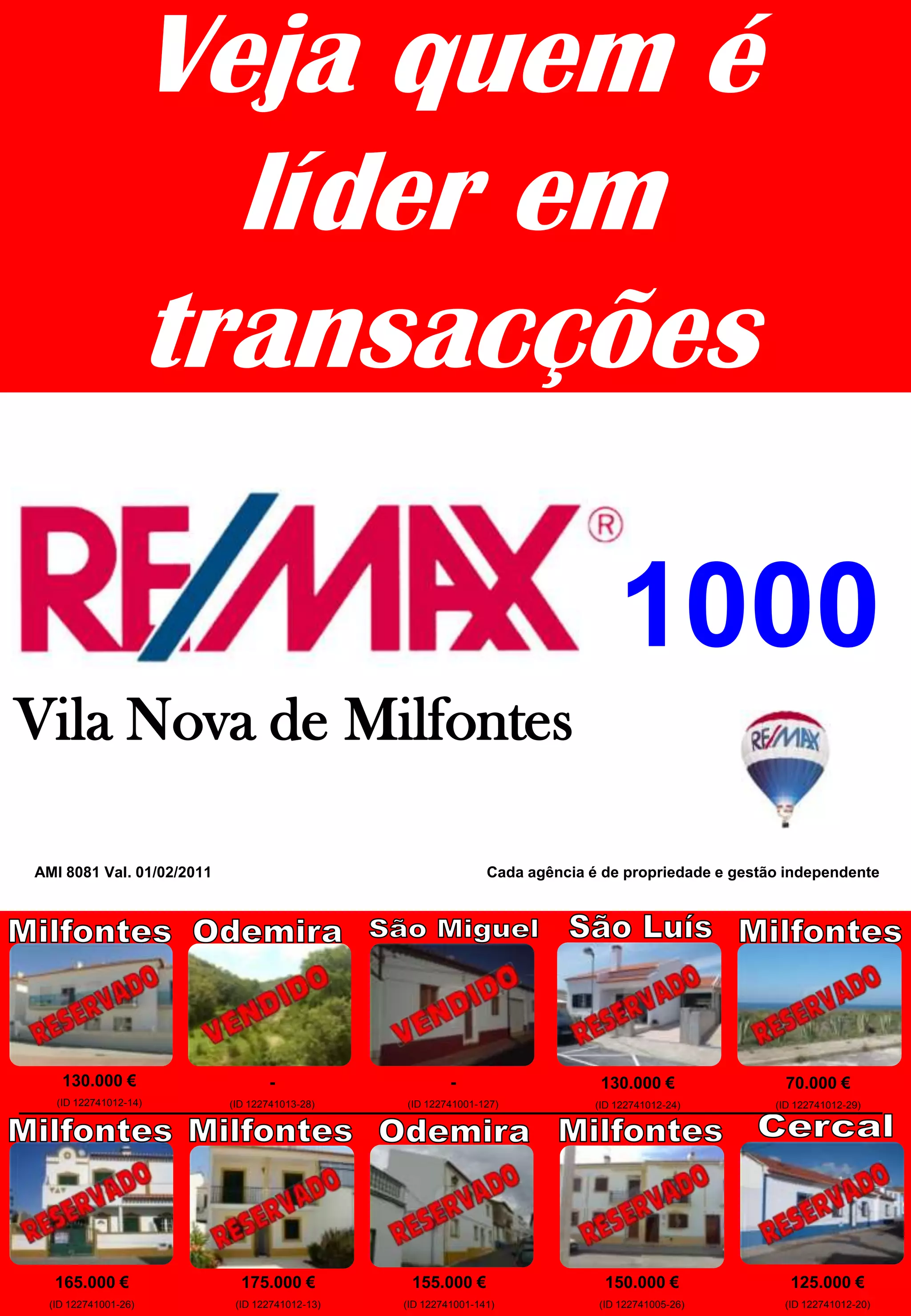 Il documento elenca vari lotti in vendita a Vila Nova de Milfontes e nelle sue vicinanze, con prezzi che variano da 48.500 € a 175.000 €. Ogni agenzia menzionata è di proprietà e gestione indipendente. Presenta anche informazioni relative agli identificatori unici per ciascun lotto.