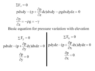 4) Pressure measurement devices like manometers use fluid statics principles to determine pressure differences.