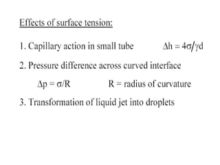 The document discusses several key properties of fluids relevant for fluid mechanics, including:
