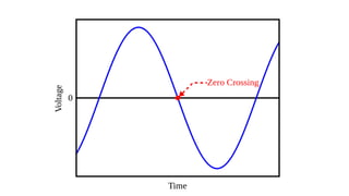 This document discusses FM demodulation using a zero crossing detector. It contains a block diagram of a zero crossing detector system consisting of a zero crossing detector, pulse generator, DC block, and low pass filter. It explains that the zero crossing detector operates by measuring the time difference between adjacent zero crossings of the FM wave, which is related to the instantaneous frequency and can be used to recover the message signal. It notes the advantages and disadvantages of this technique.