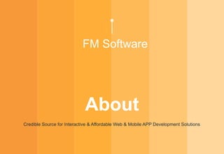 FM Software Solutions is an ISO certified IT company that provides web and mobile app development solutions. They have over 10 years of experience developing 2000+ projects for clients across multiple countries. They offer affordable software development services including web design, eCommerce solutions, app development, and digital marketing. Their team of experts follows a structured development process to deliver high quality solutions on time.