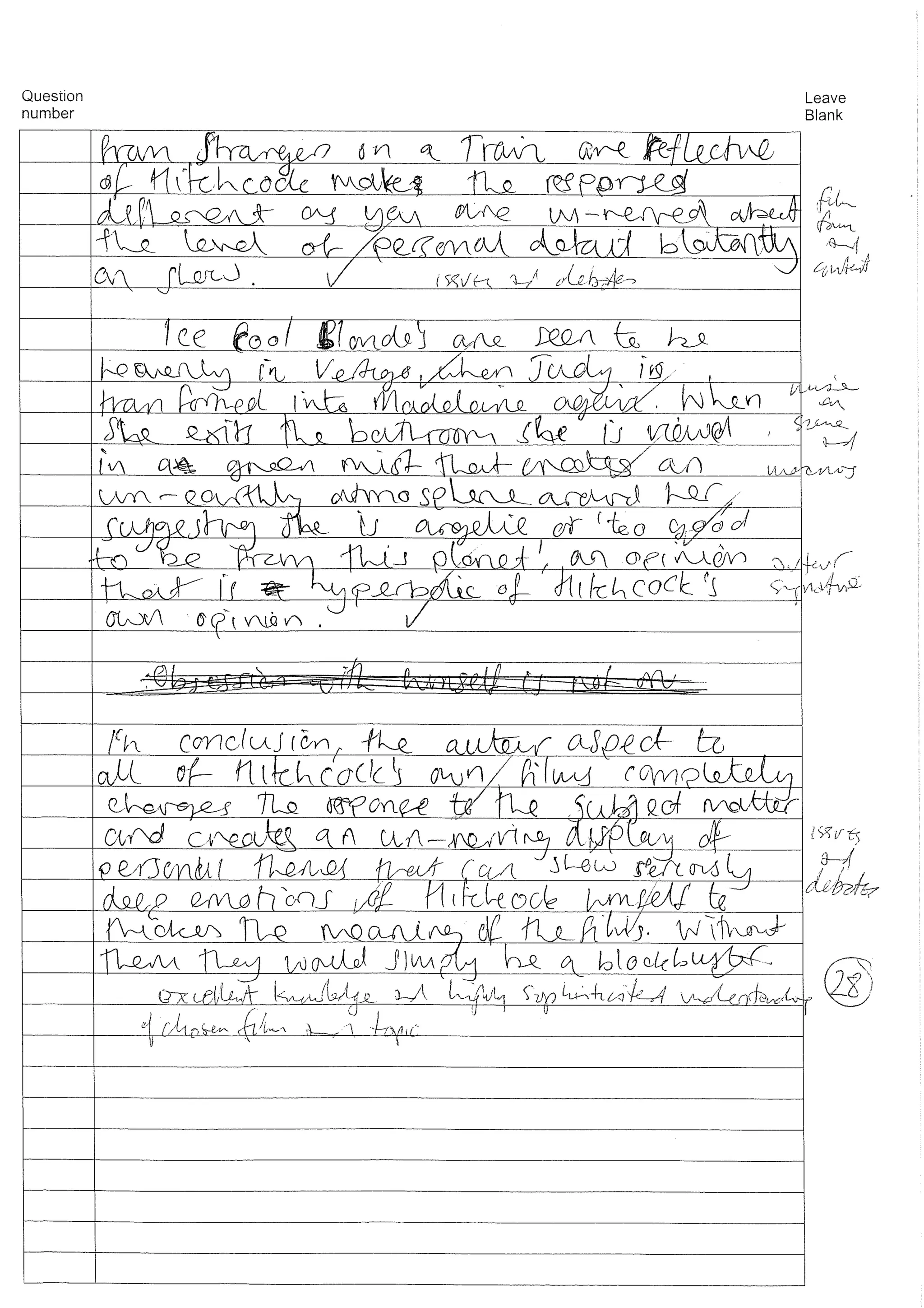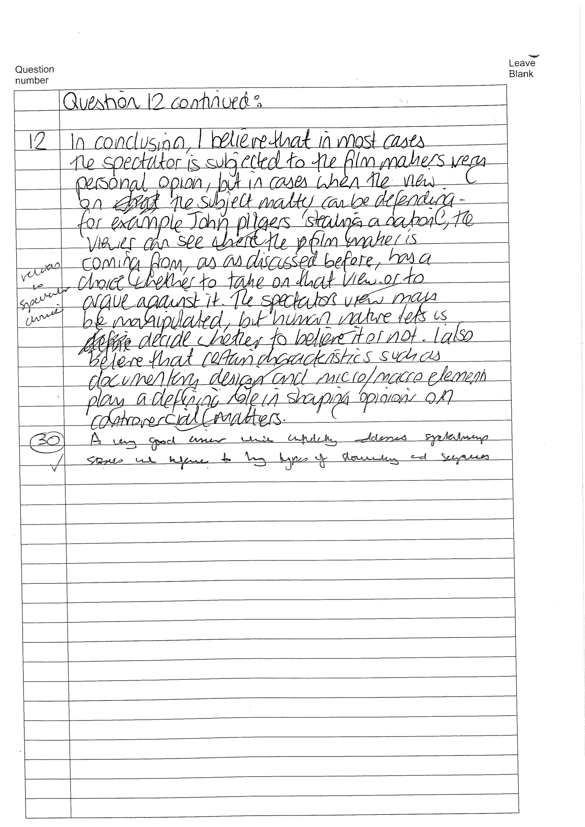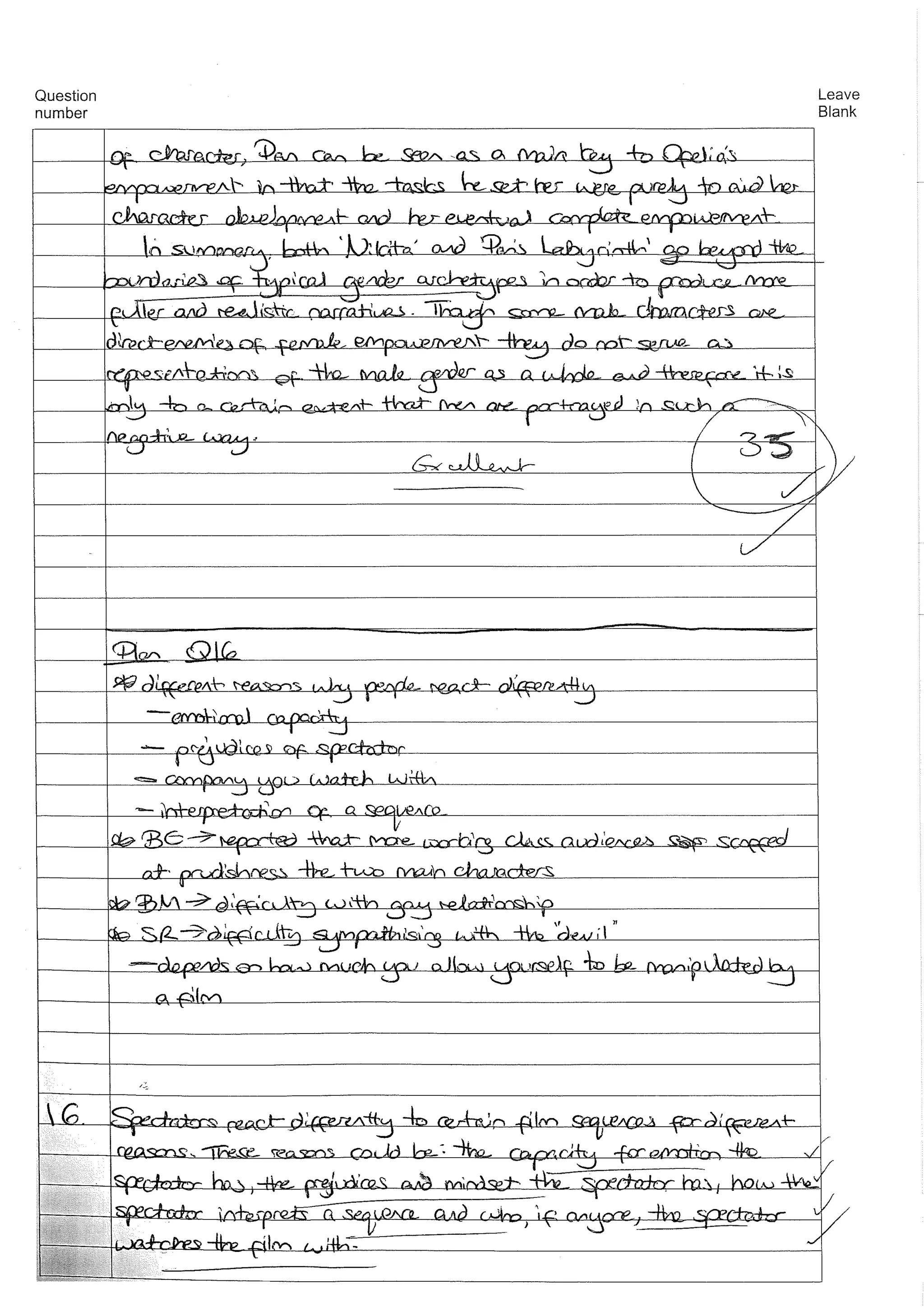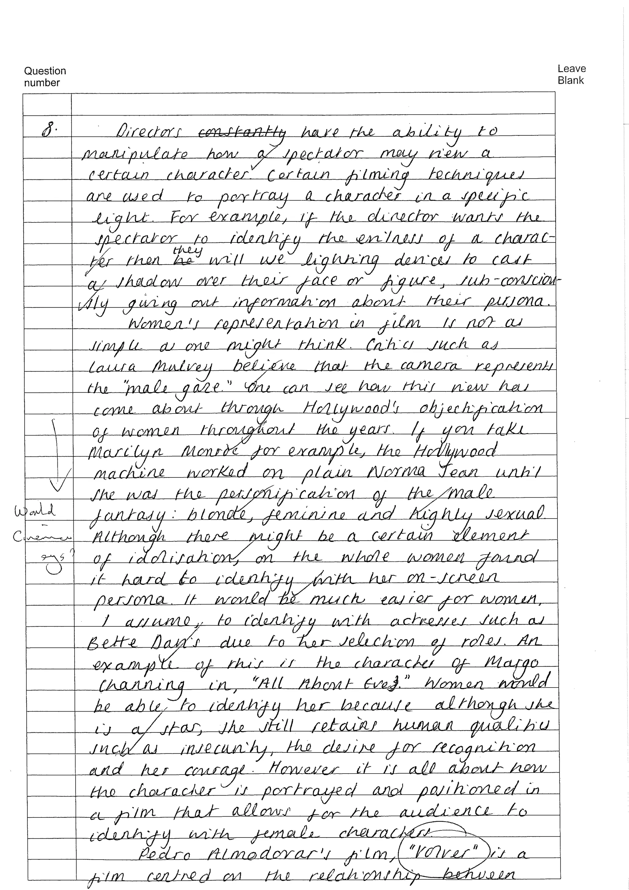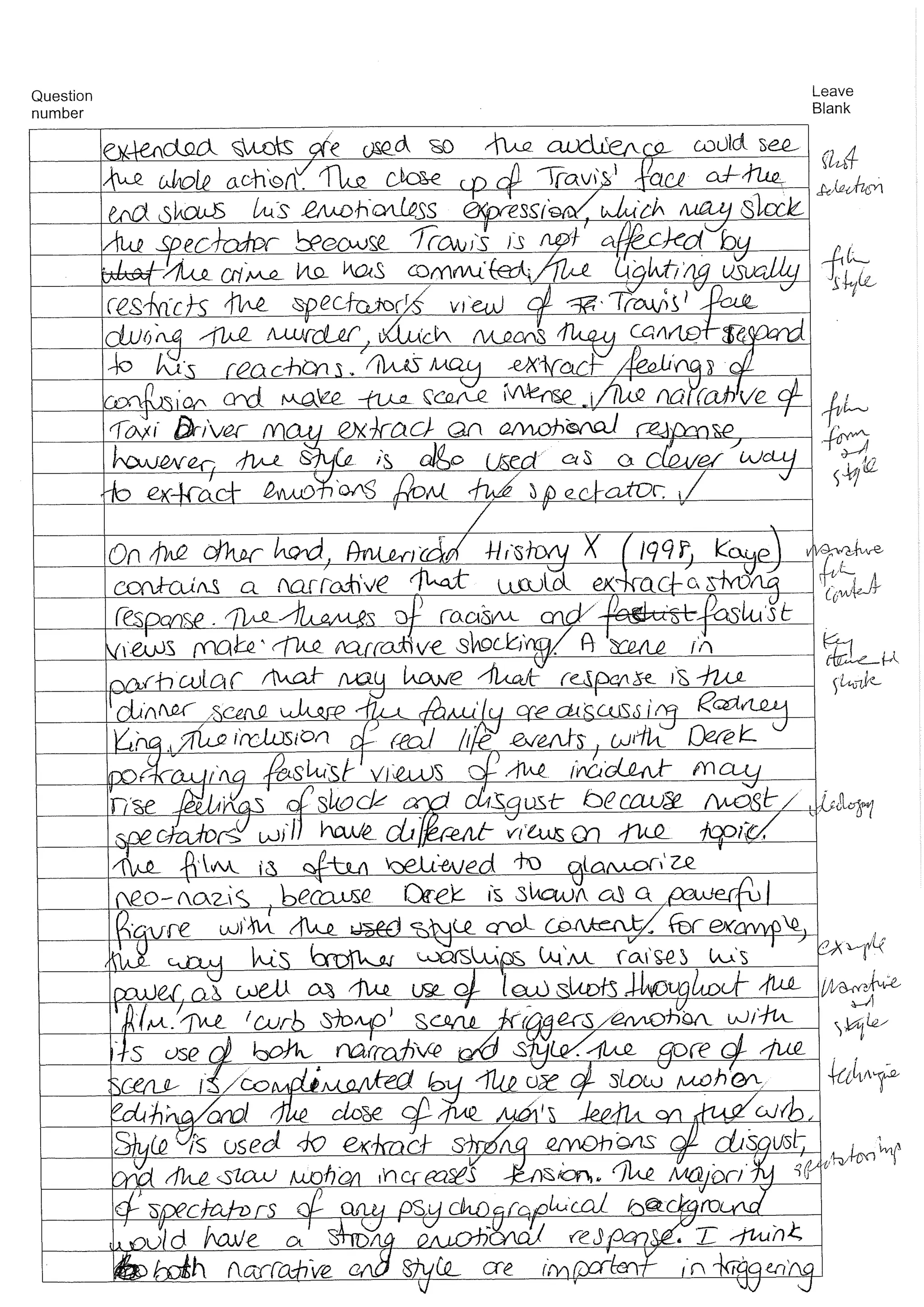 This document contains exemplar scripts from 8 candidates who took the GCE Film Studies exam. It provides a brief overview of each candidate's responses including the topics/films discussed in each section and their raw marks. The topics covered a wide range of film genres, movements and issues. Overall marks ranged from 86 to 96 and section marks were out of 35 for sections A and B, and 30 for section C. Grade boundaries for the exam are also provided.
