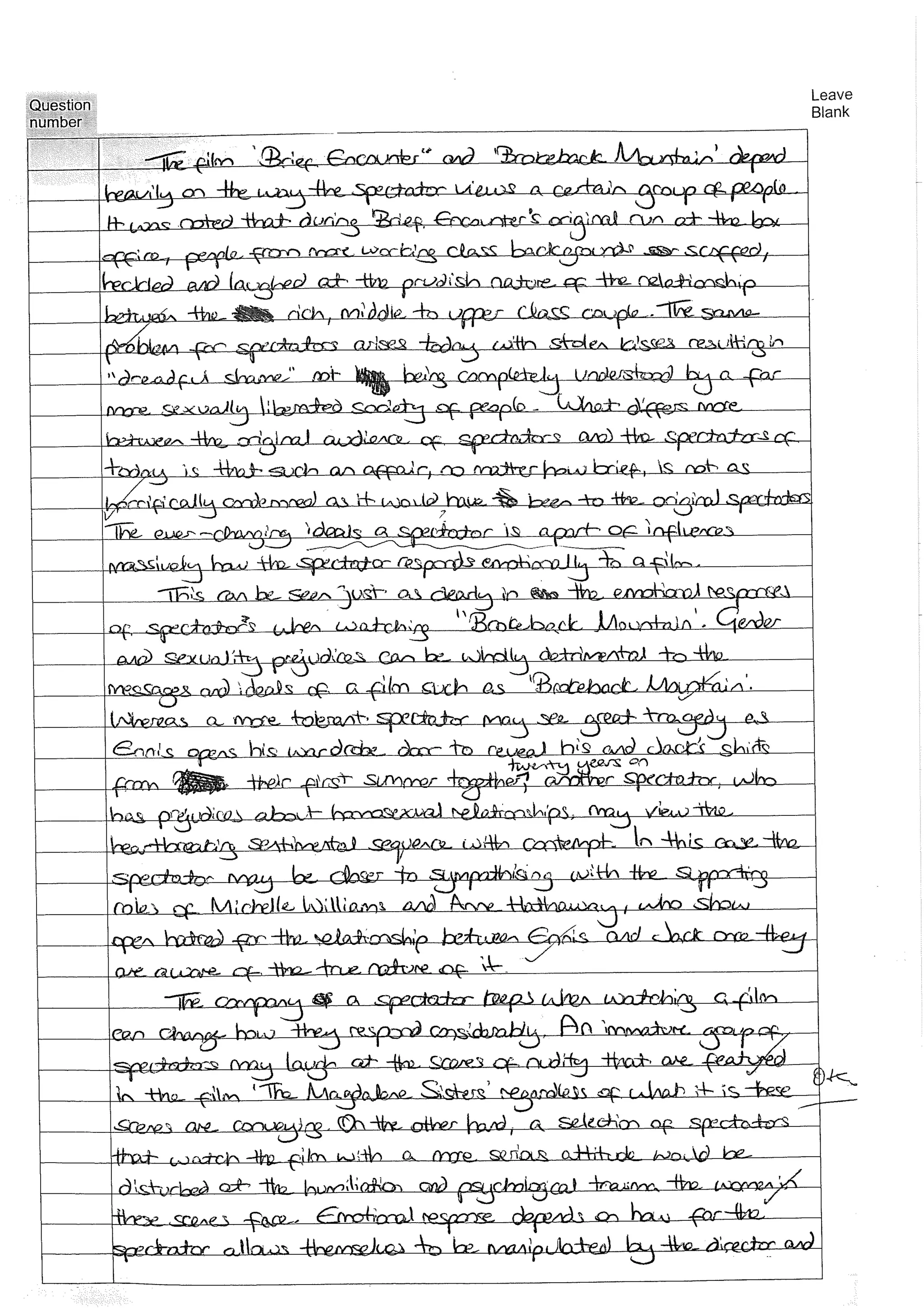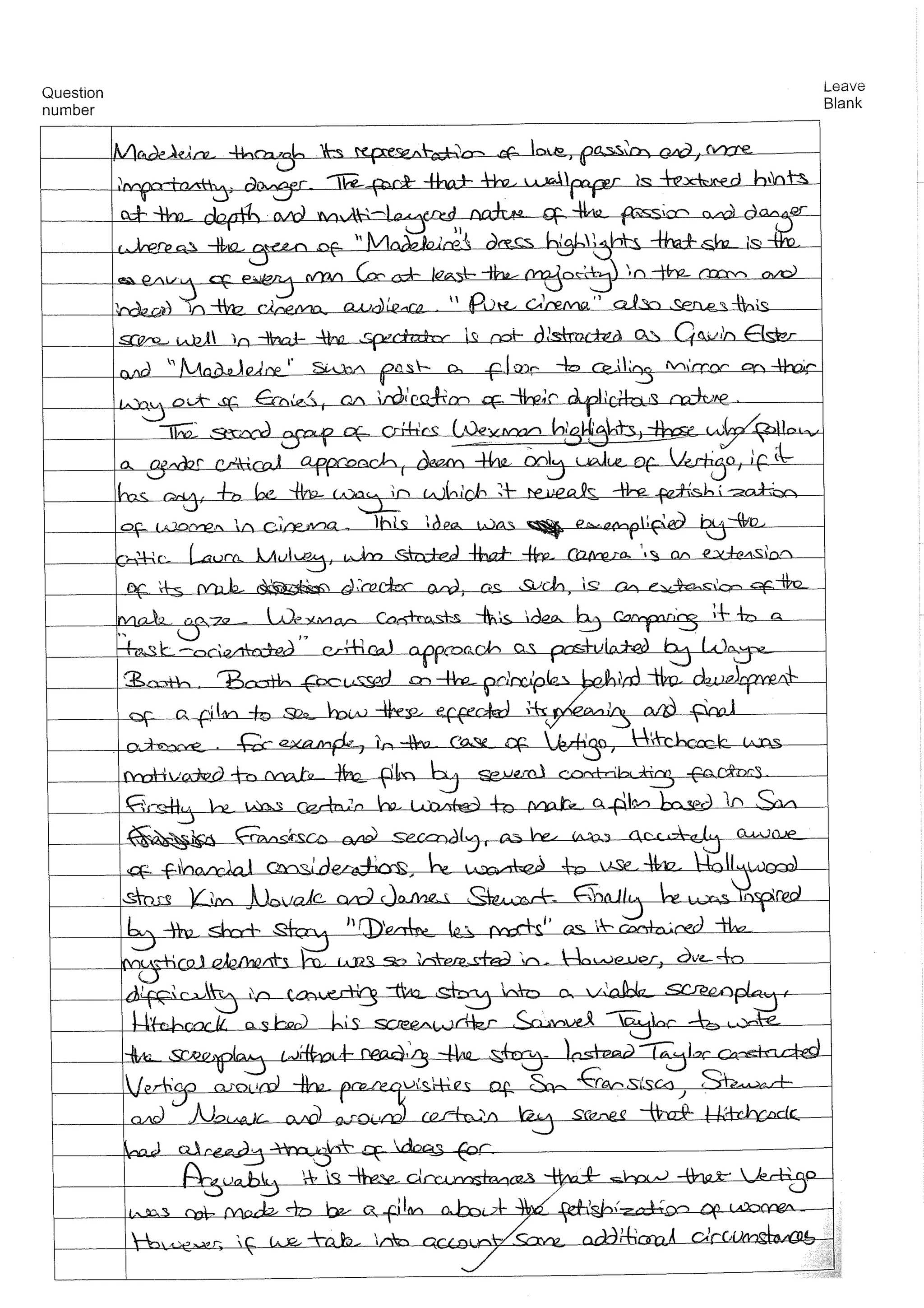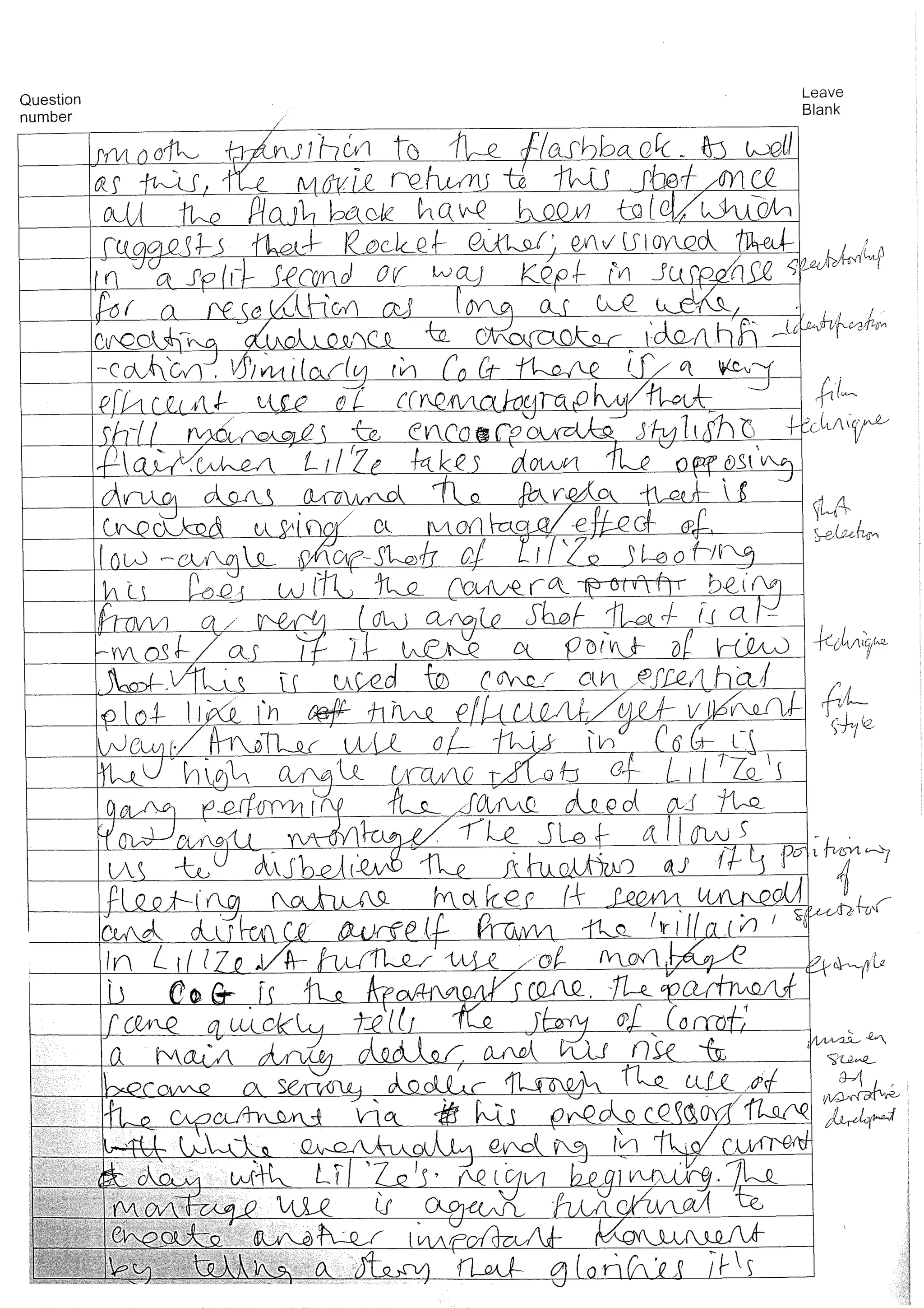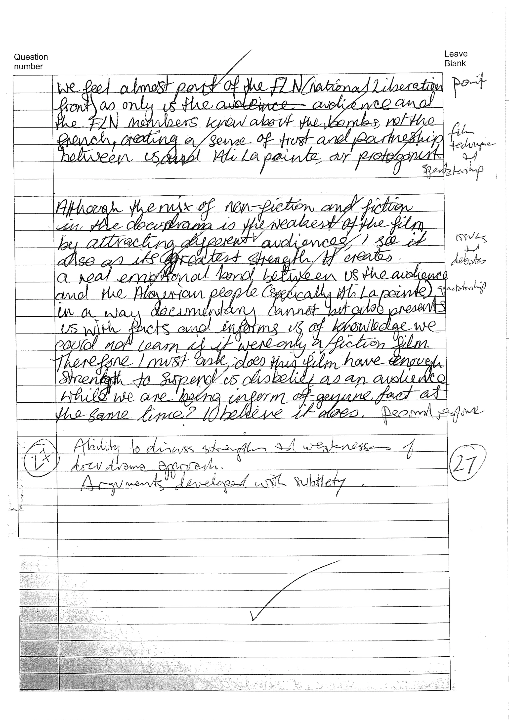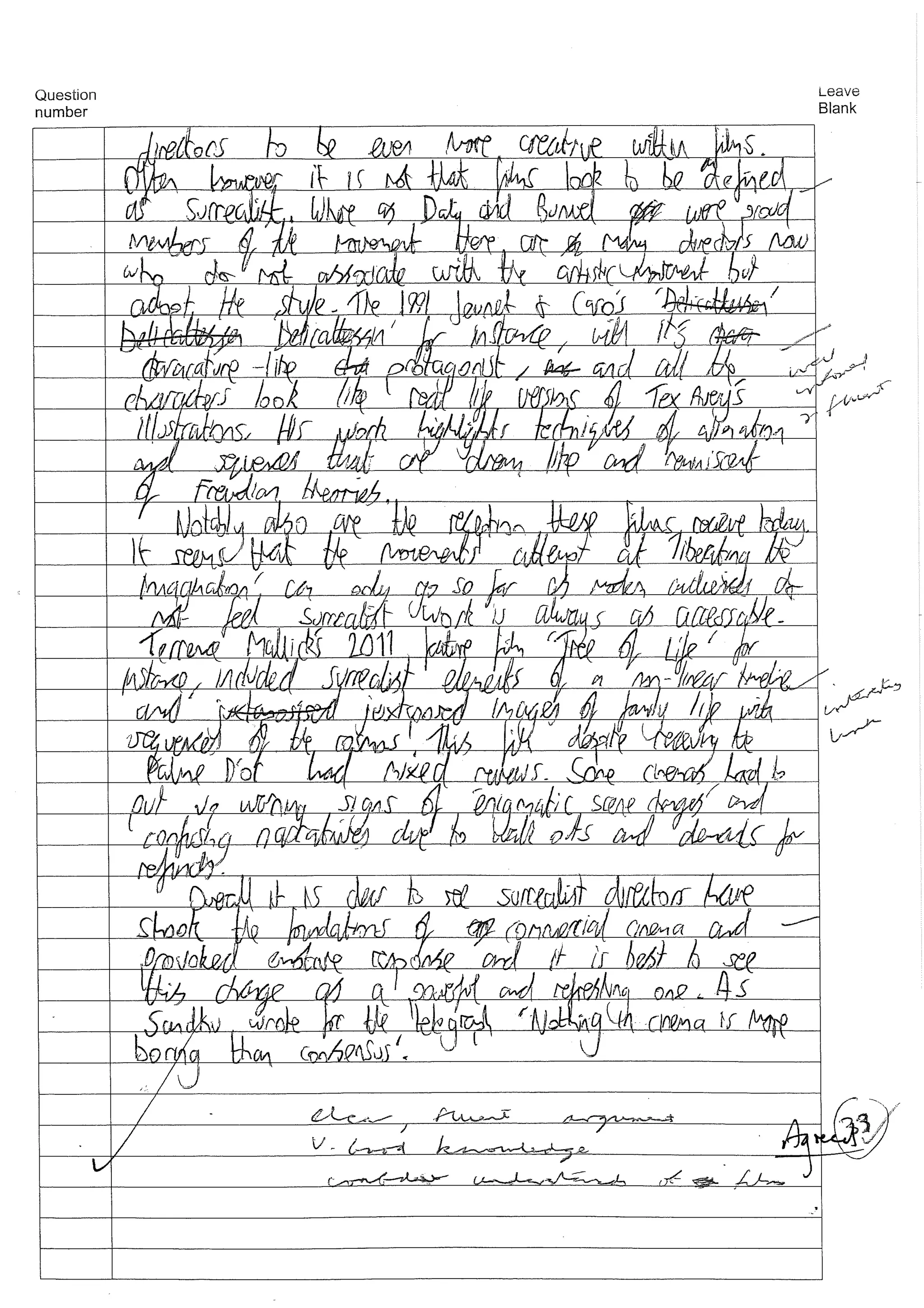 This document contains exemplar scripts from 8 candidates who took the GCE Film Studies exam. It provides a brief overview of each candidate's responses including the topics/films discussed in each section and their raw marks. The topics covered a wide range of film genres, movements and issues. Overall marks ranged from 86 to 96 and section marks were out of 35 for sections A and B, and 30 for section C. Grade boundaries for the exam are also provided.