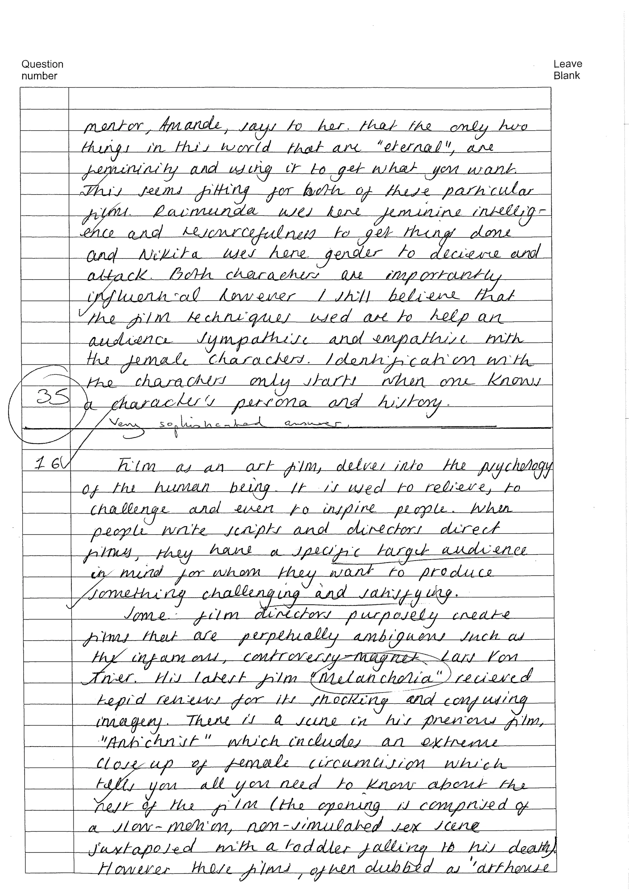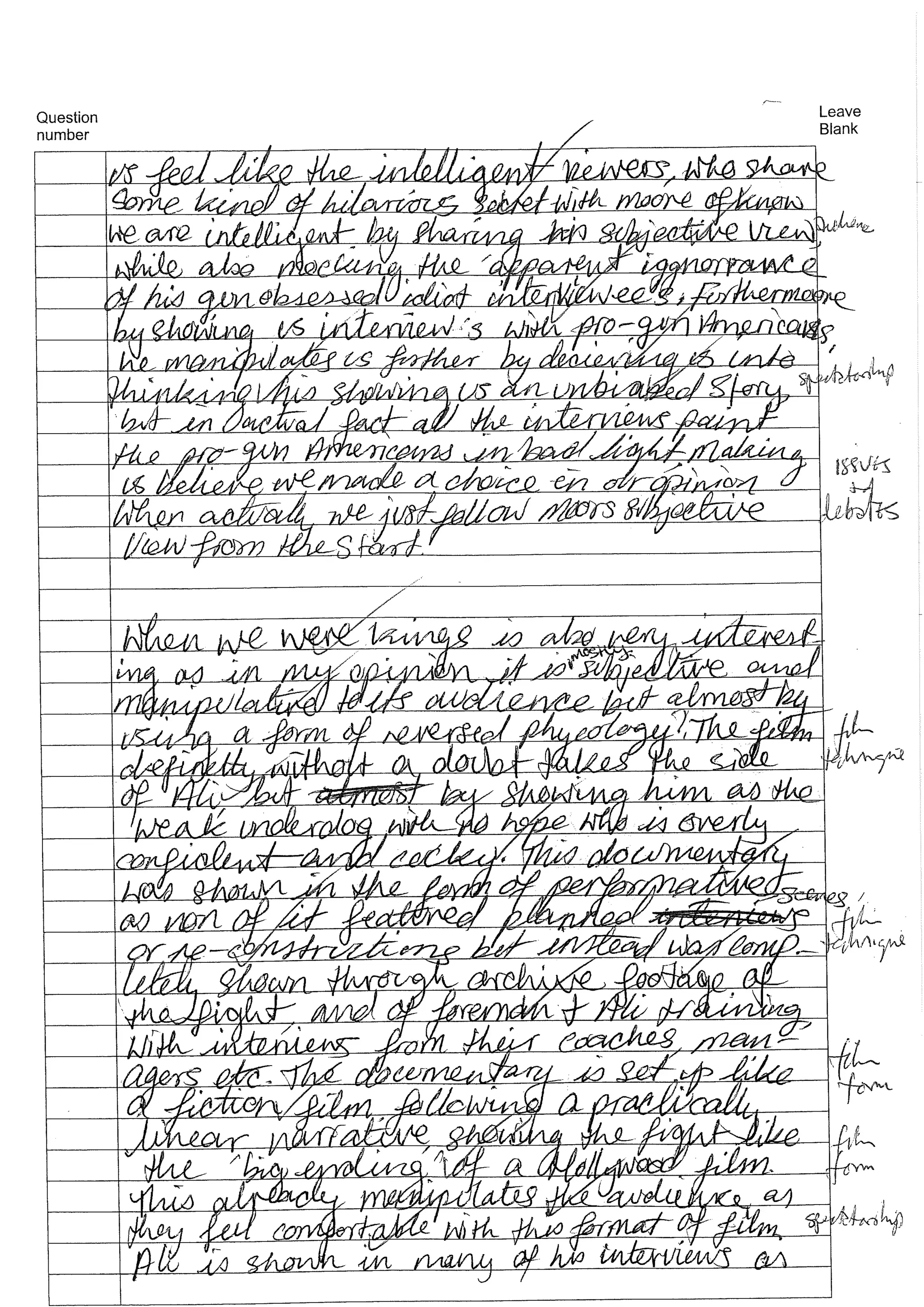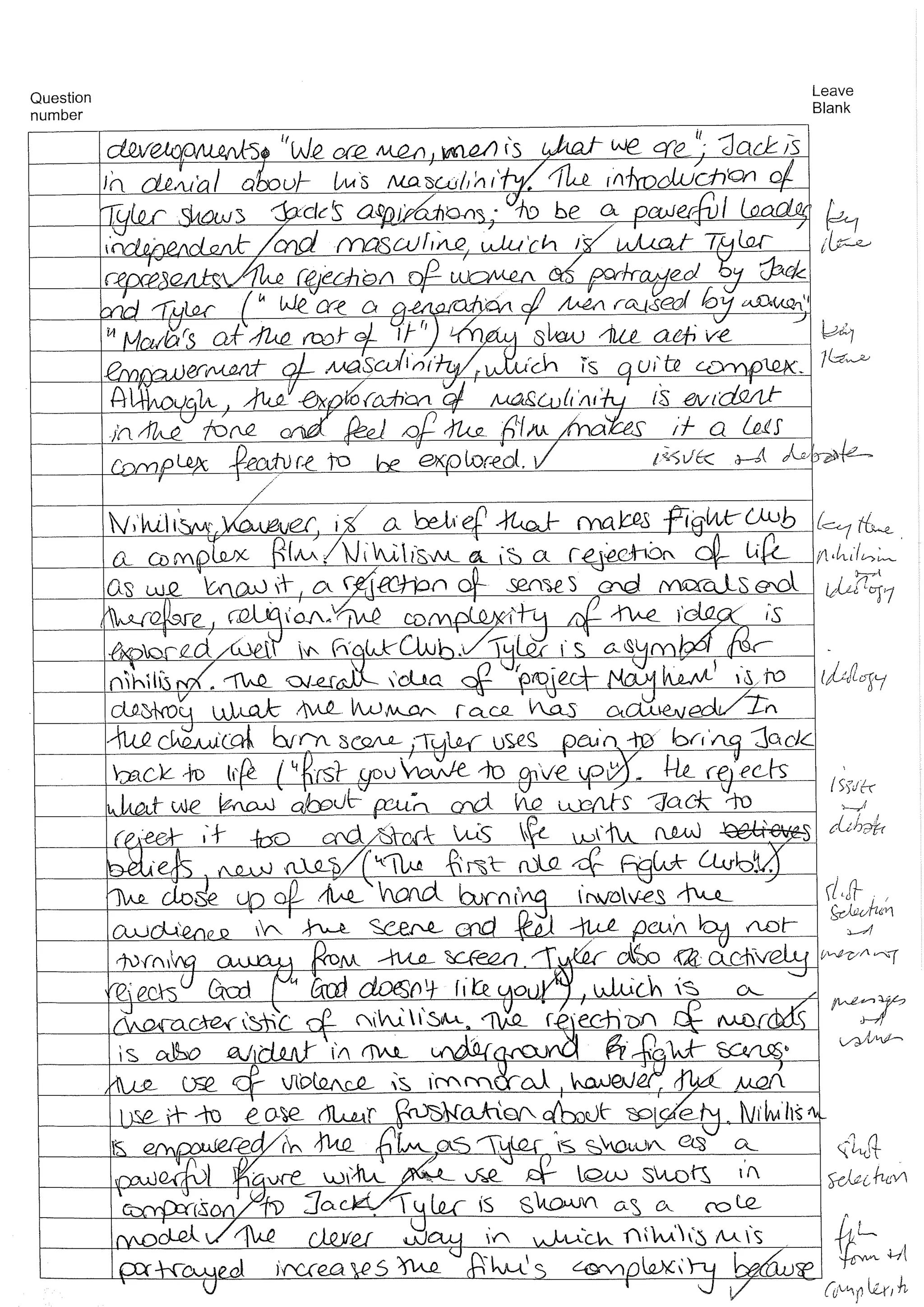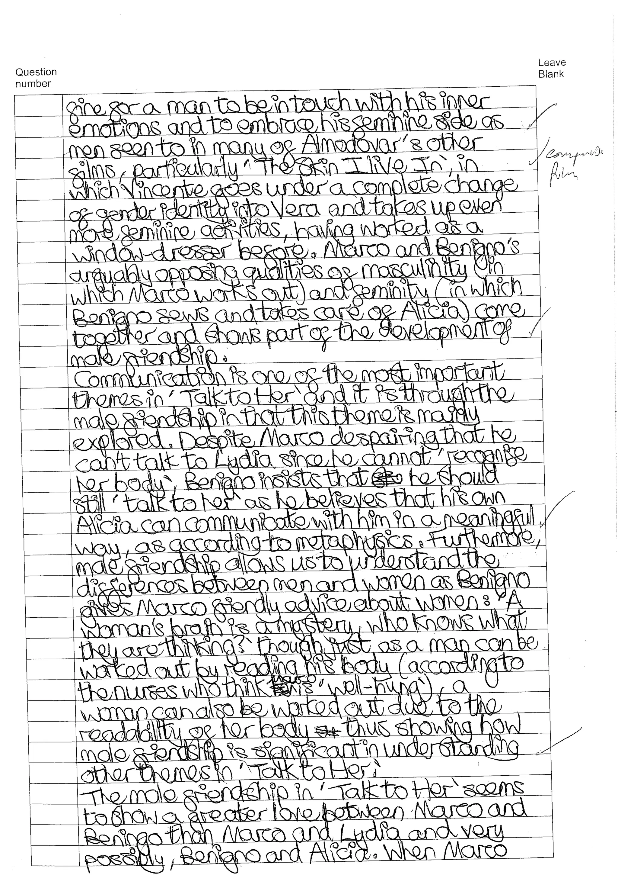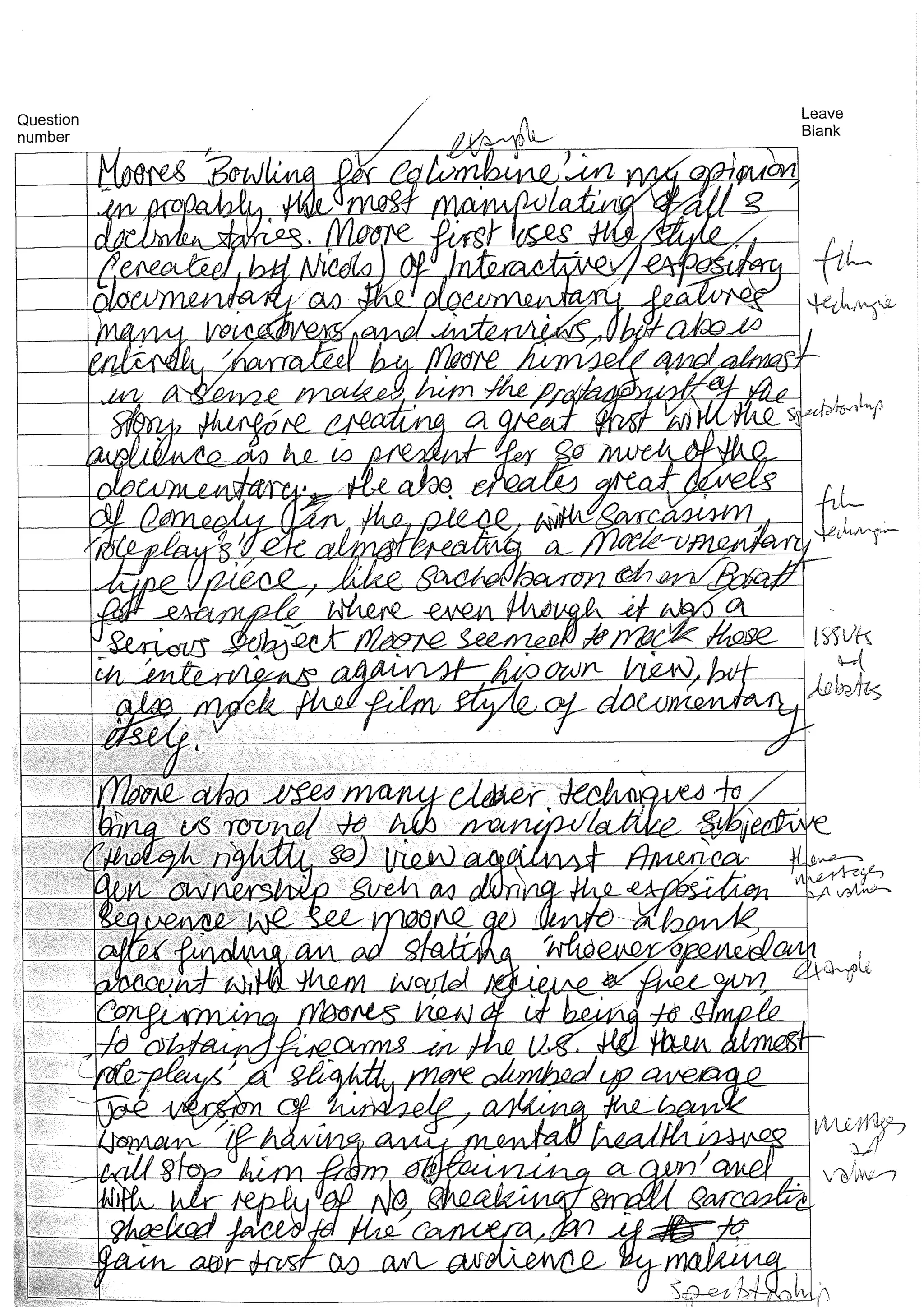 This document contains exemplar scripts from 8 candidates who took the GCE Film Studies exam. It provides a brief overview of each candidate's responses including the topics/films discussed in each section and their raw marks. The topics covered a wide range of film genres, movements and issues. Overall marks ranged from 86 to 96 and section marks were out of 35 for sections A and B, and 30 for section C. Grade boundaries for the exam are also provided.