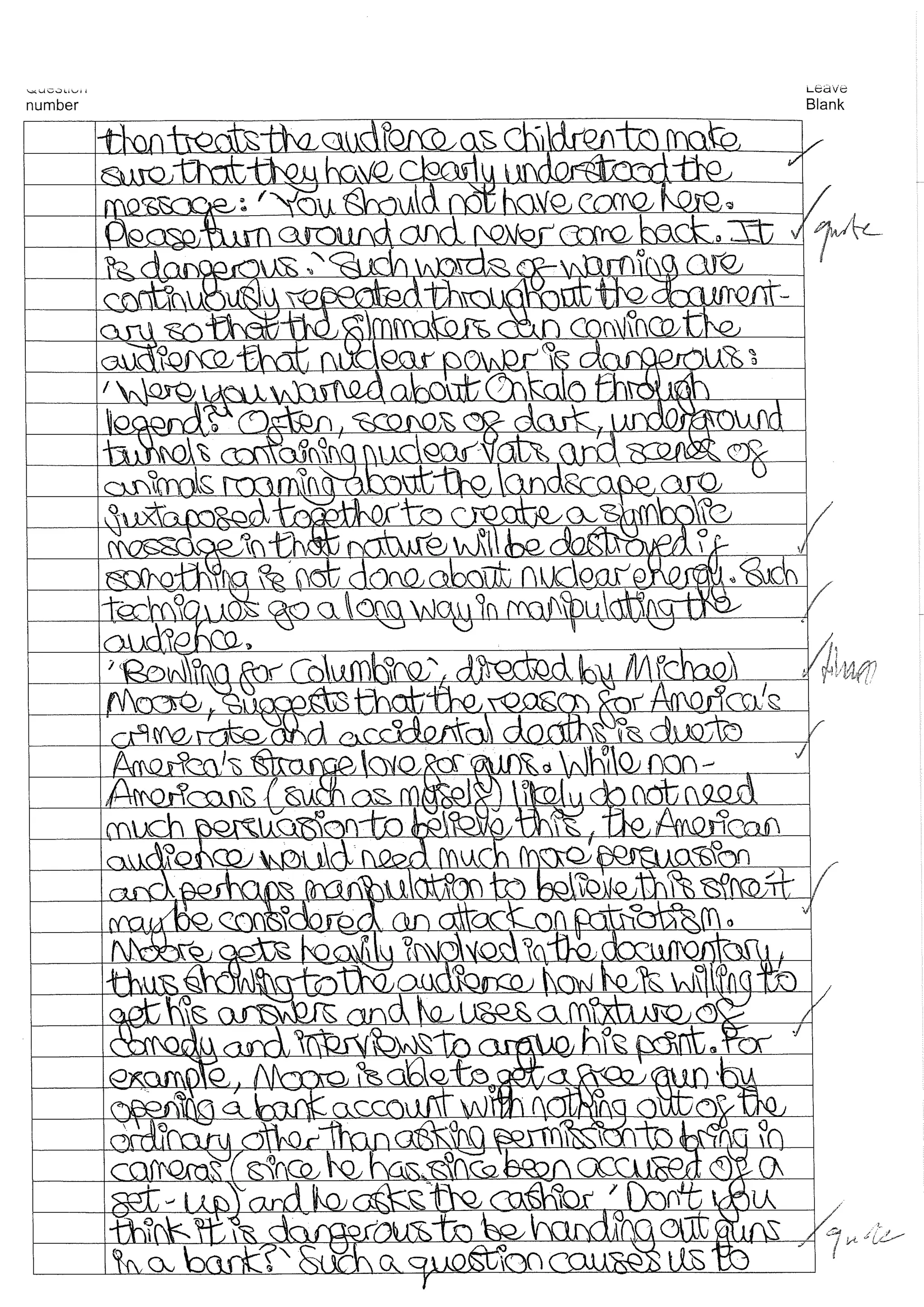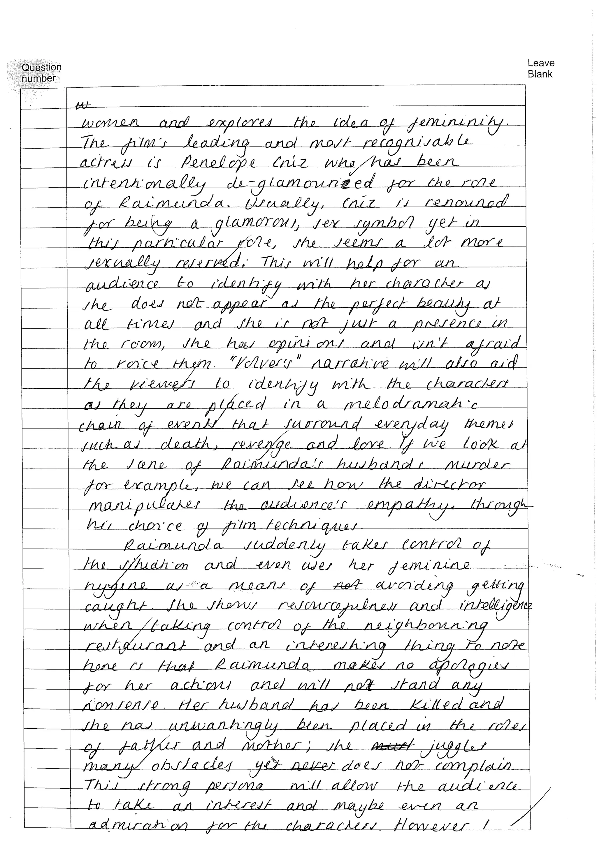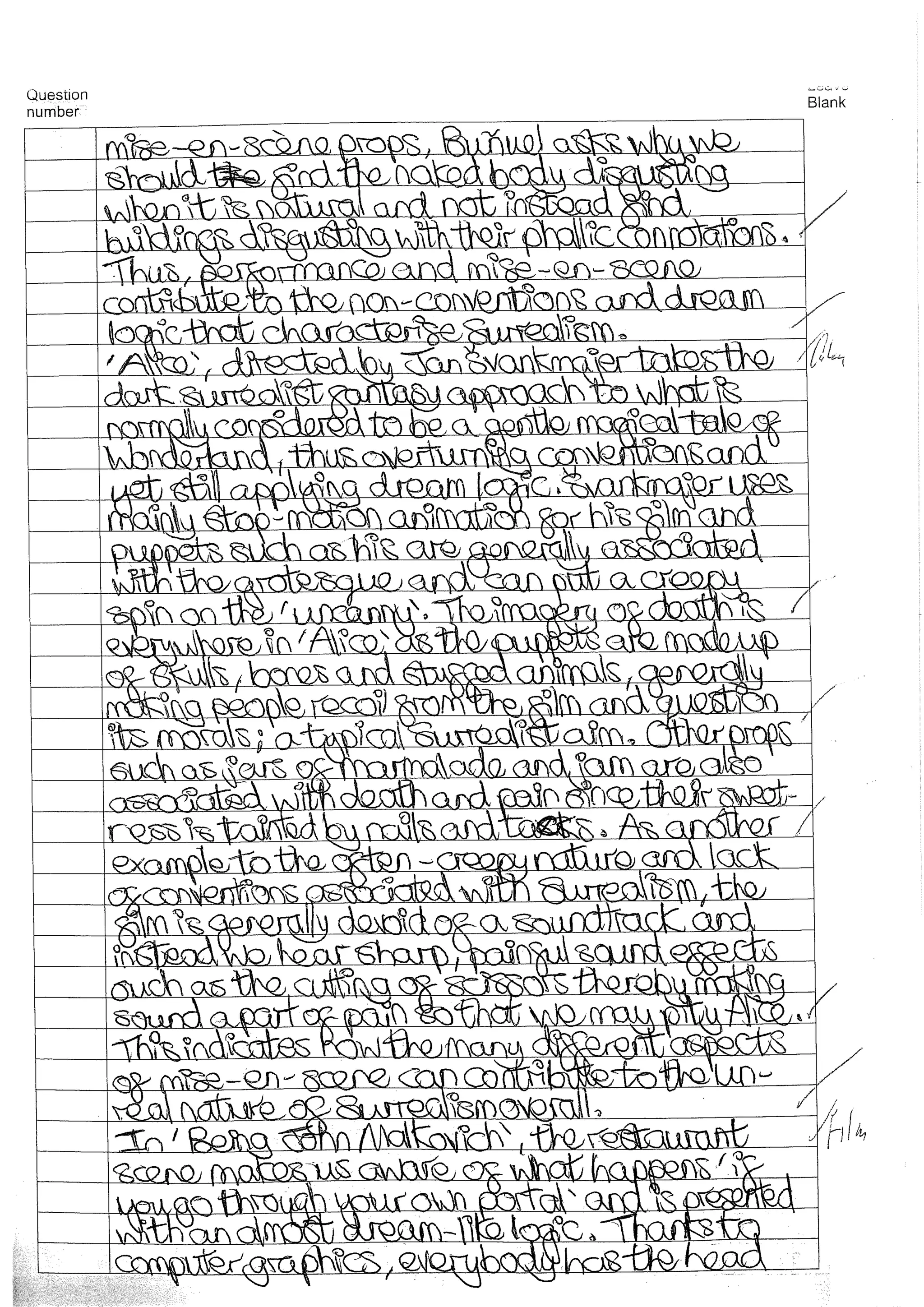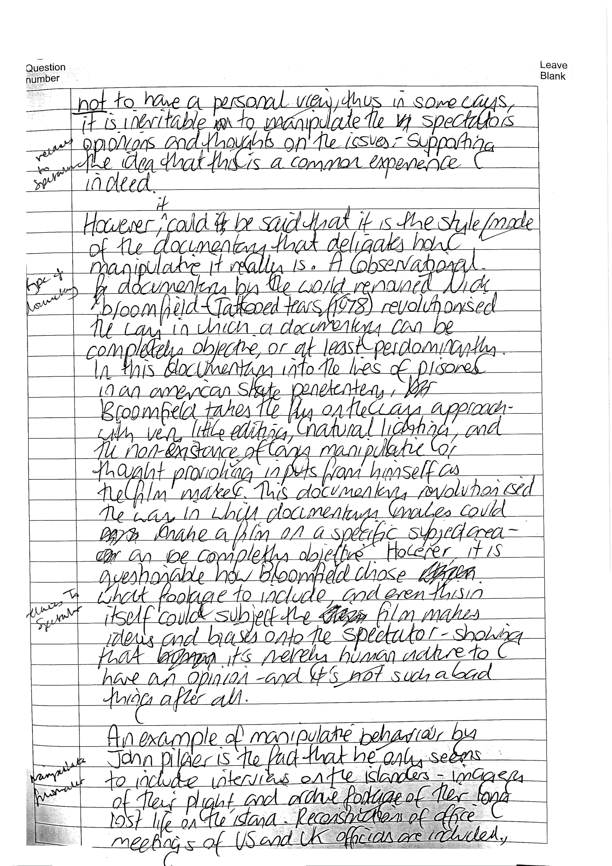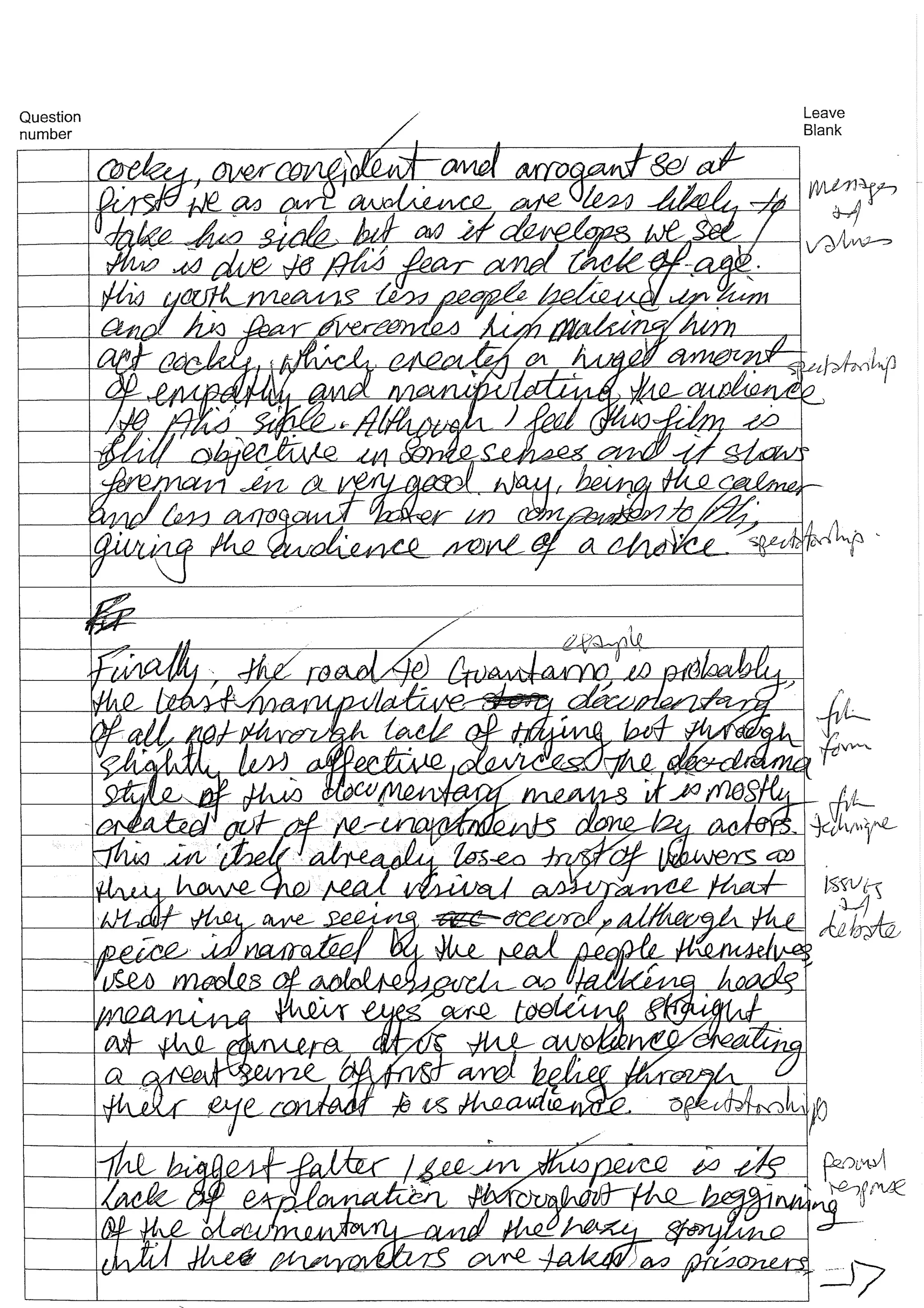 This document contains exemplar scripts from 8 candidates who took the GCE Film Studies exam. It provides a brief overview of each candidate's responses including the topics/films discussed in each section and their raw marks. The topics covered a wide range of film genres, movements and issues. Overall marks ranged from 86 to 96 and section marks were out of 35 for sections A and B, and 30 for section C. Grade boundaries for the exam are also provided.