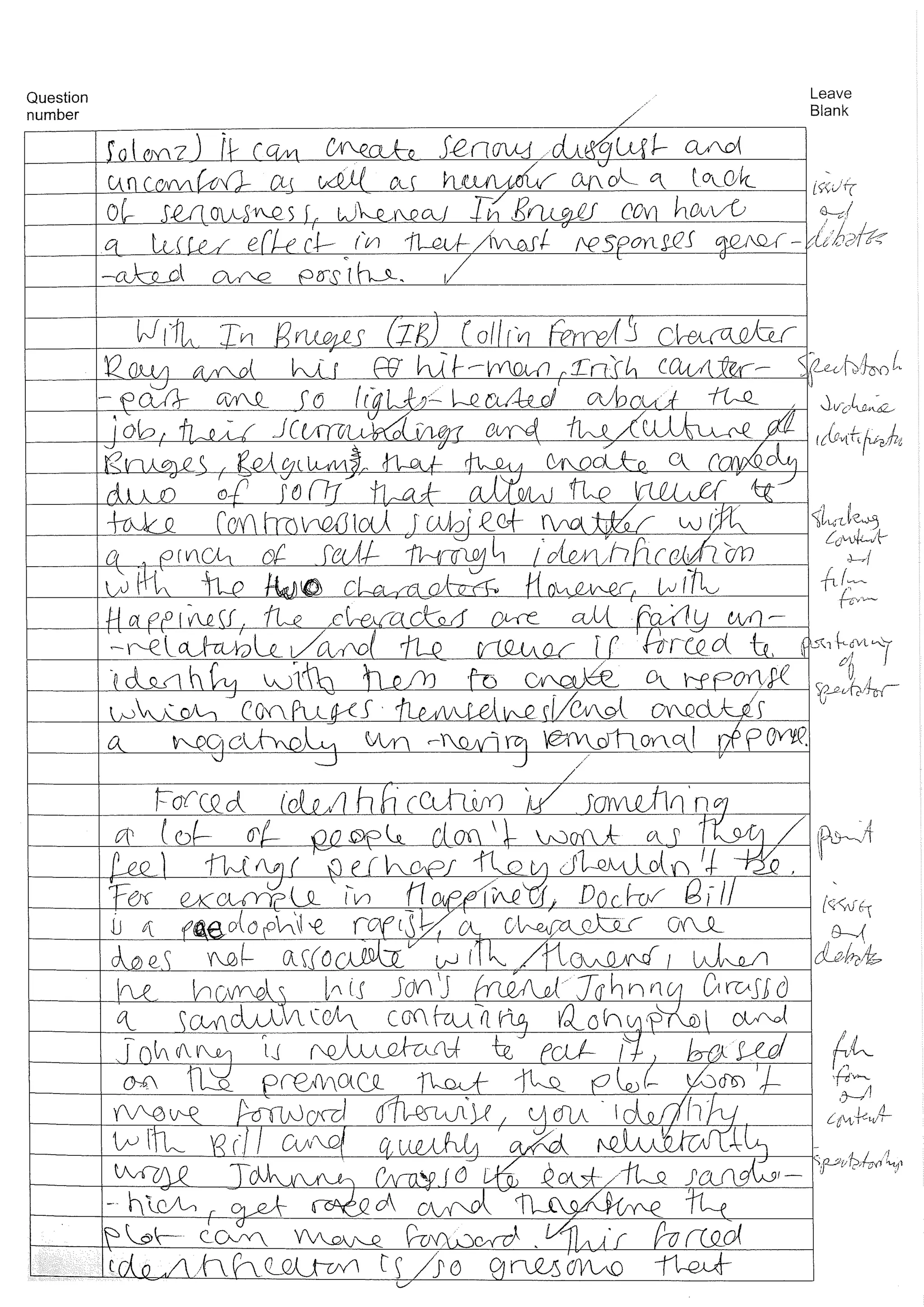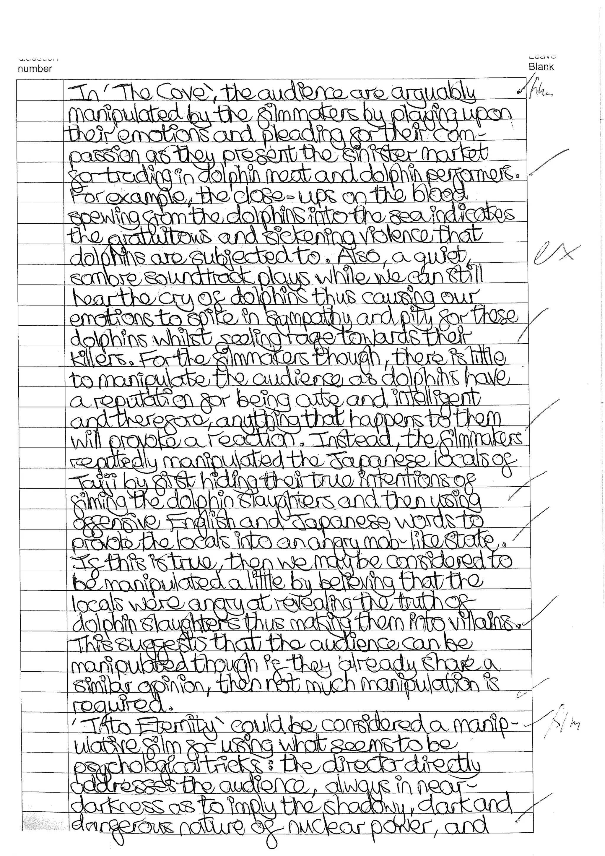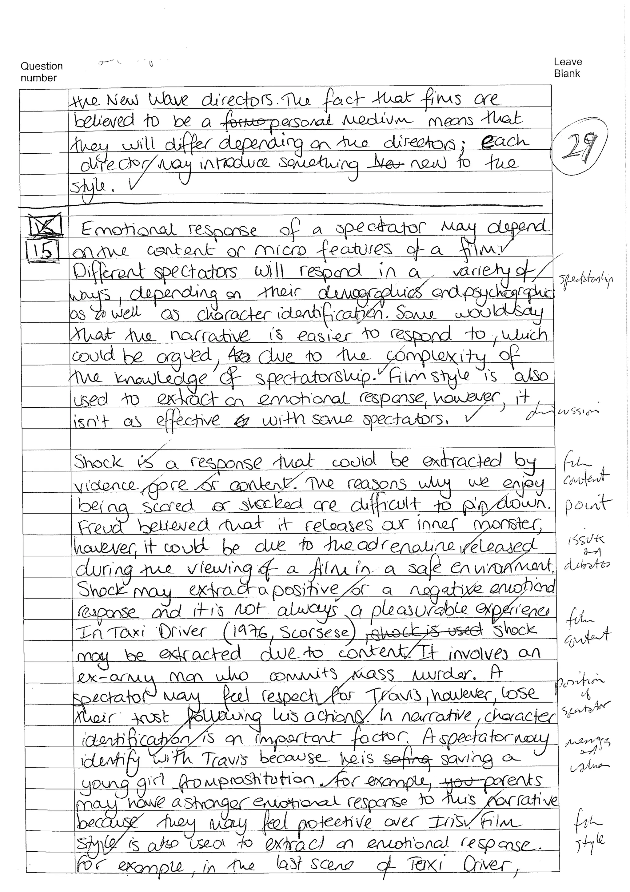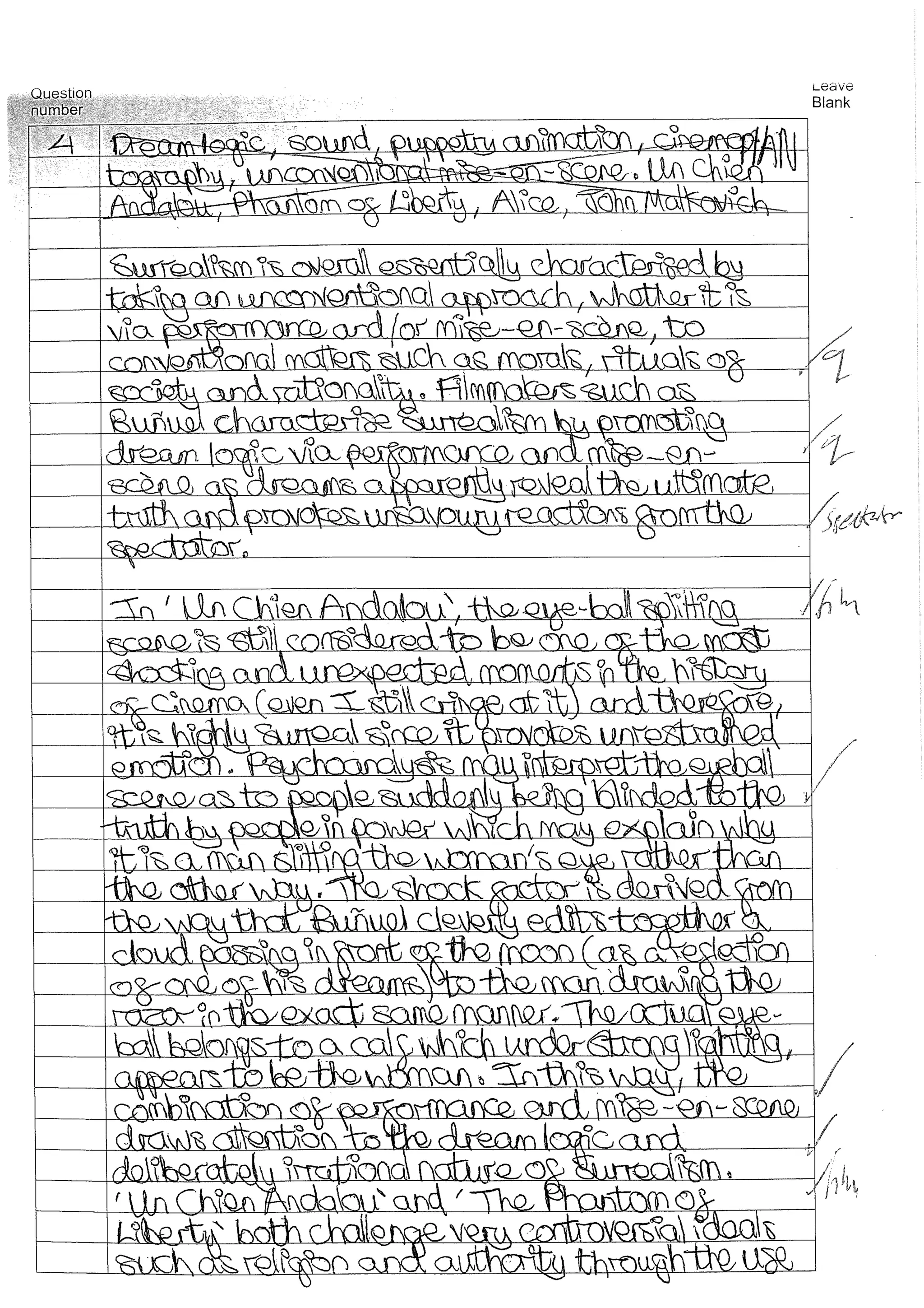 This document contains exemplar scripts from 8 candidates who took the GCE Film Studies exam. It provides a brief overview of each candidate's responses including the topics/films discussed in each section and their raw marks. The topics covered a wide range of film genres, movements and issues. Overall marks ranged from 86 to 96 and section marks were out of 35 for sections A and B, and 30 for section C. Grade boundaries for the exam are also provided.