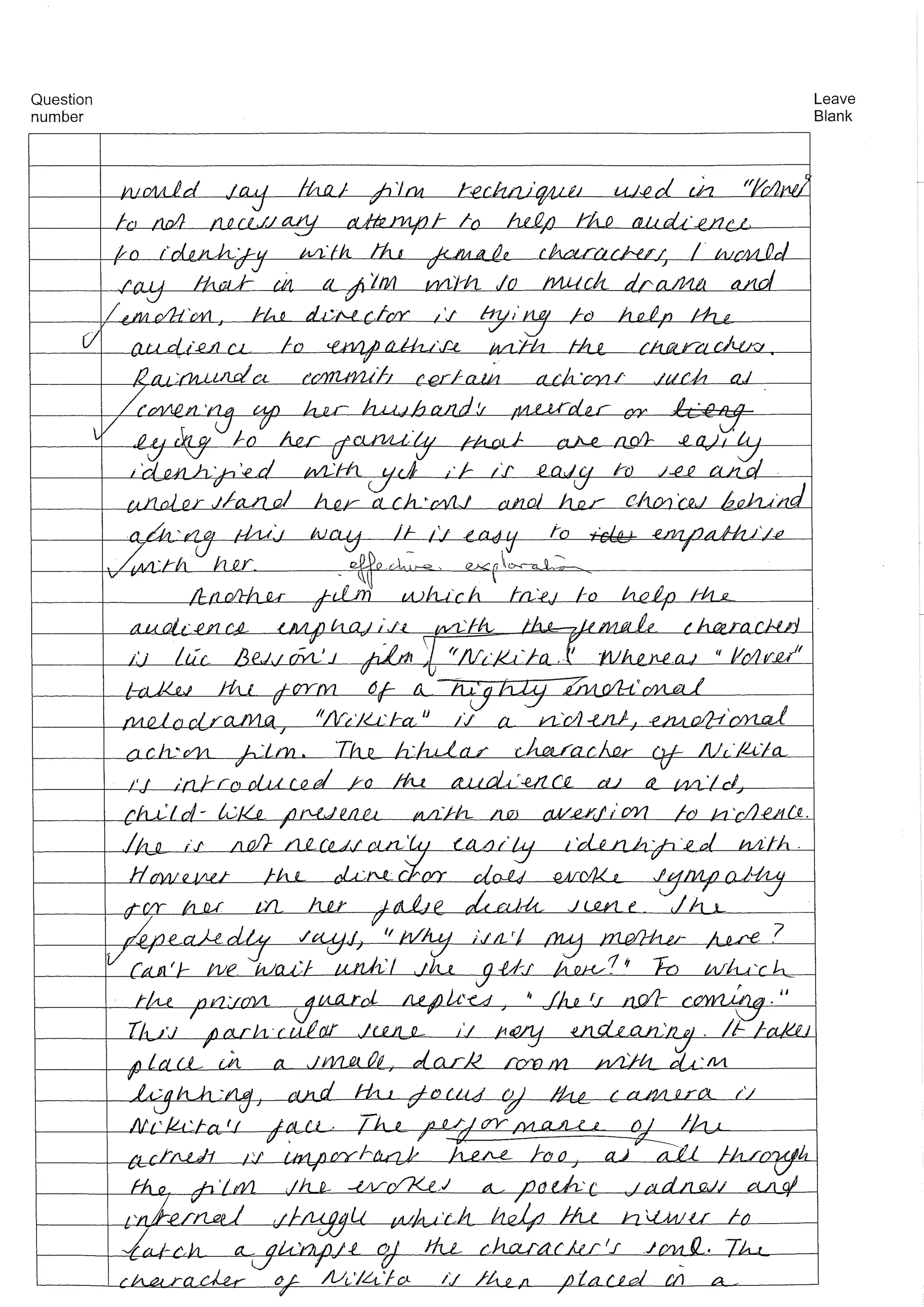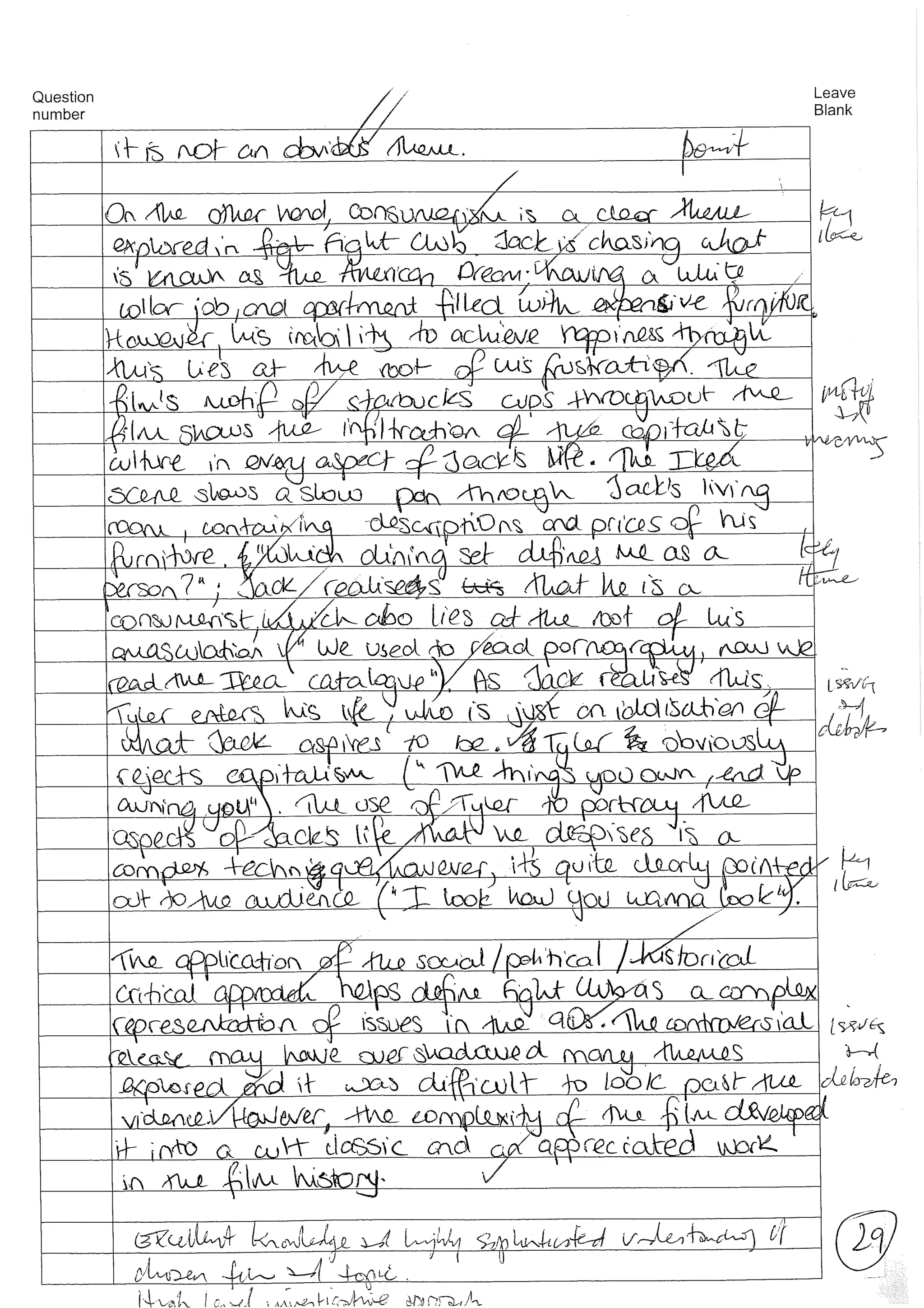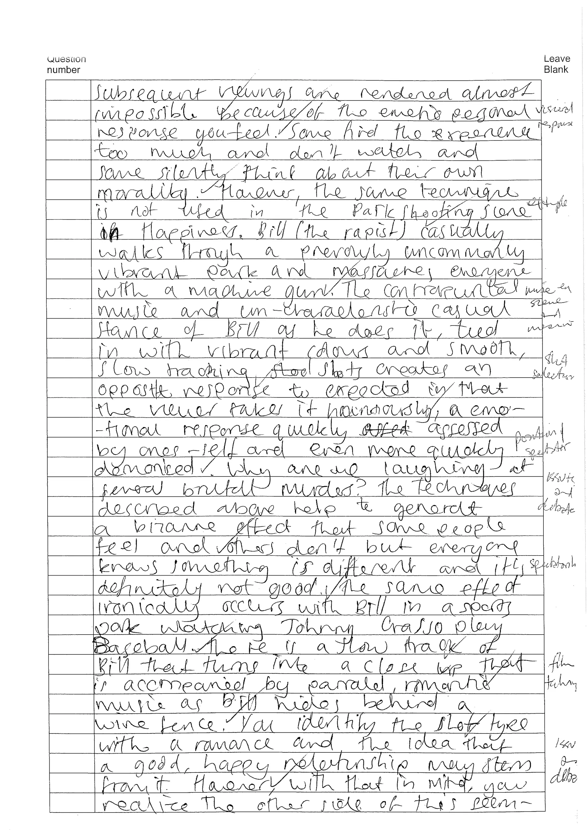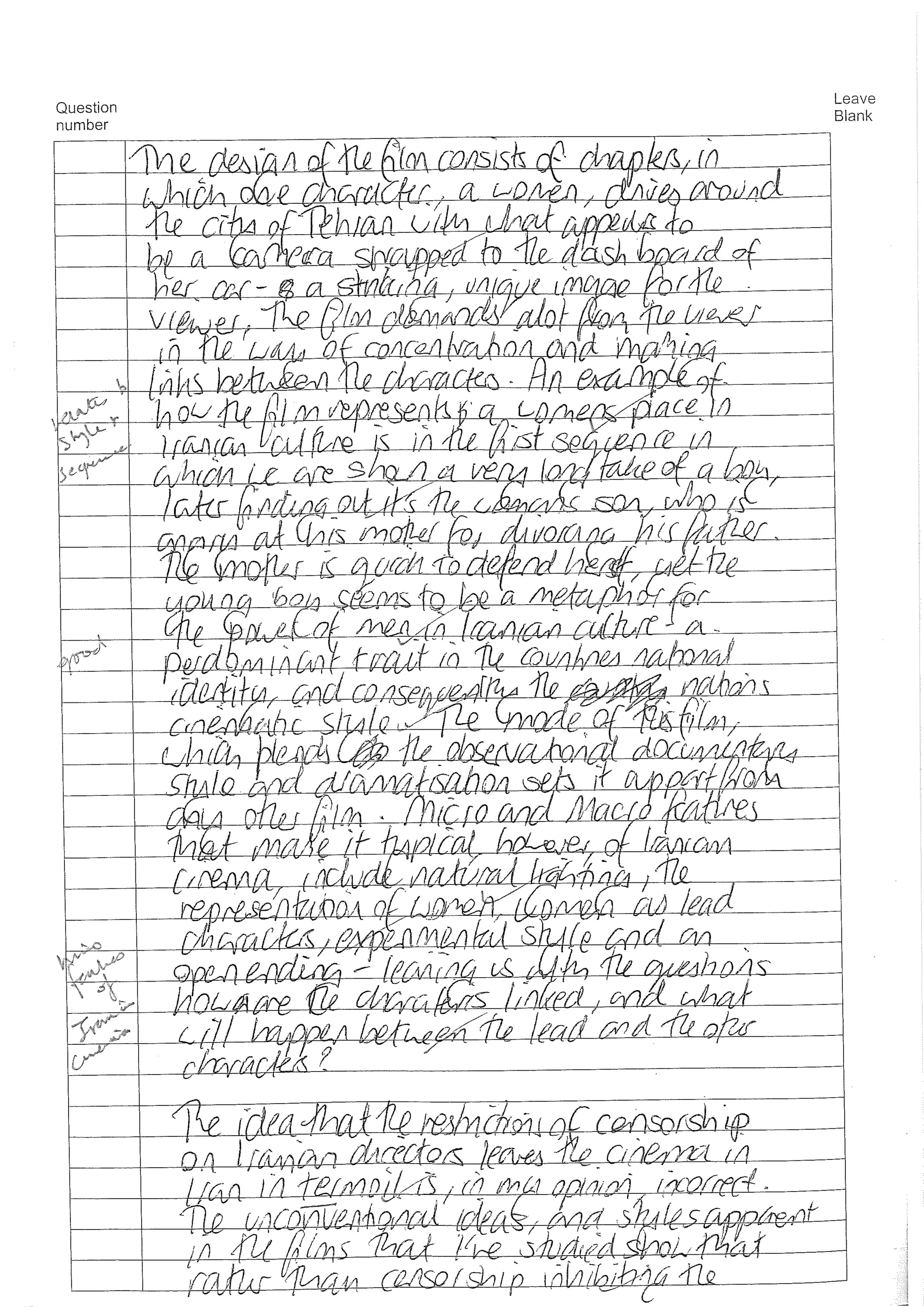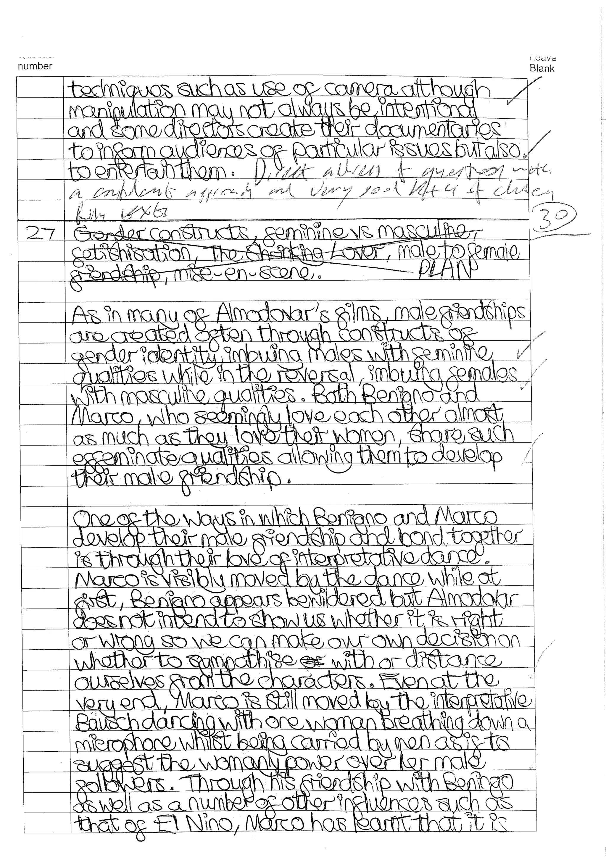 This document contains exemplar scripts from 8 candidates who took the GCE Film Studies exam. It provides a brief overview of each candidate's responses including the topics/films discussed in each section and their raw marks. The topics covered a wide range of film genres, movements and issues. Overall marks ranged from 86 to 96 and section marks were out of 35 for sections A and B, and 30 for section C. Grade boundaries for the exam are also provided.
