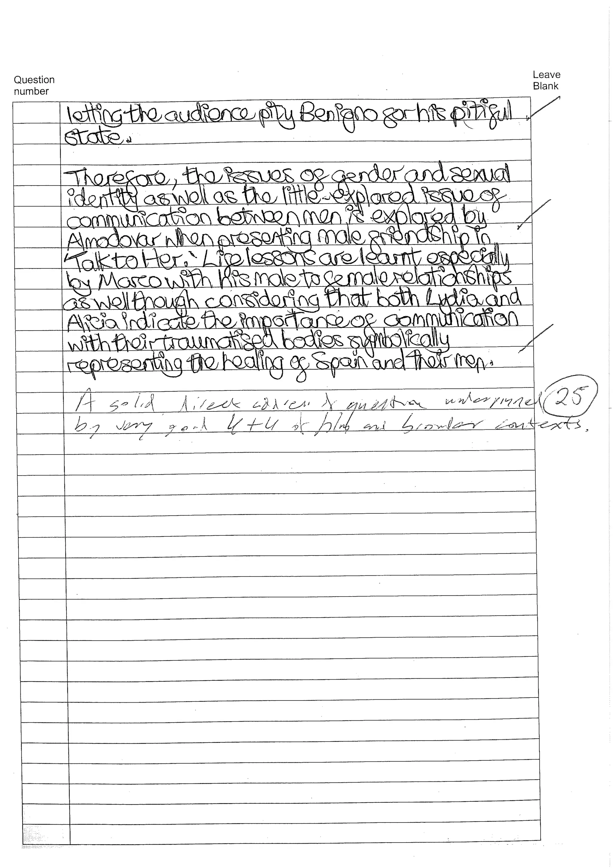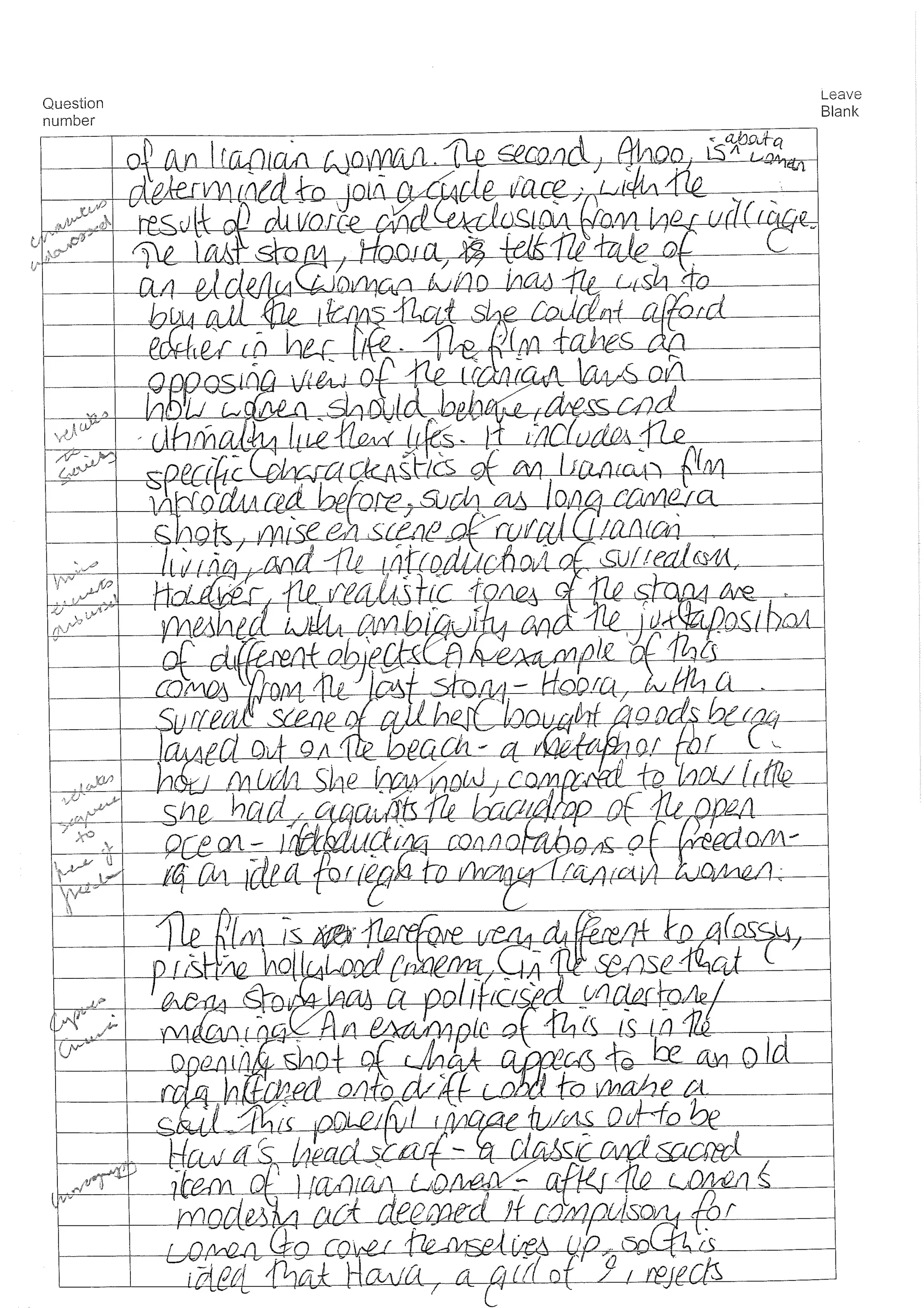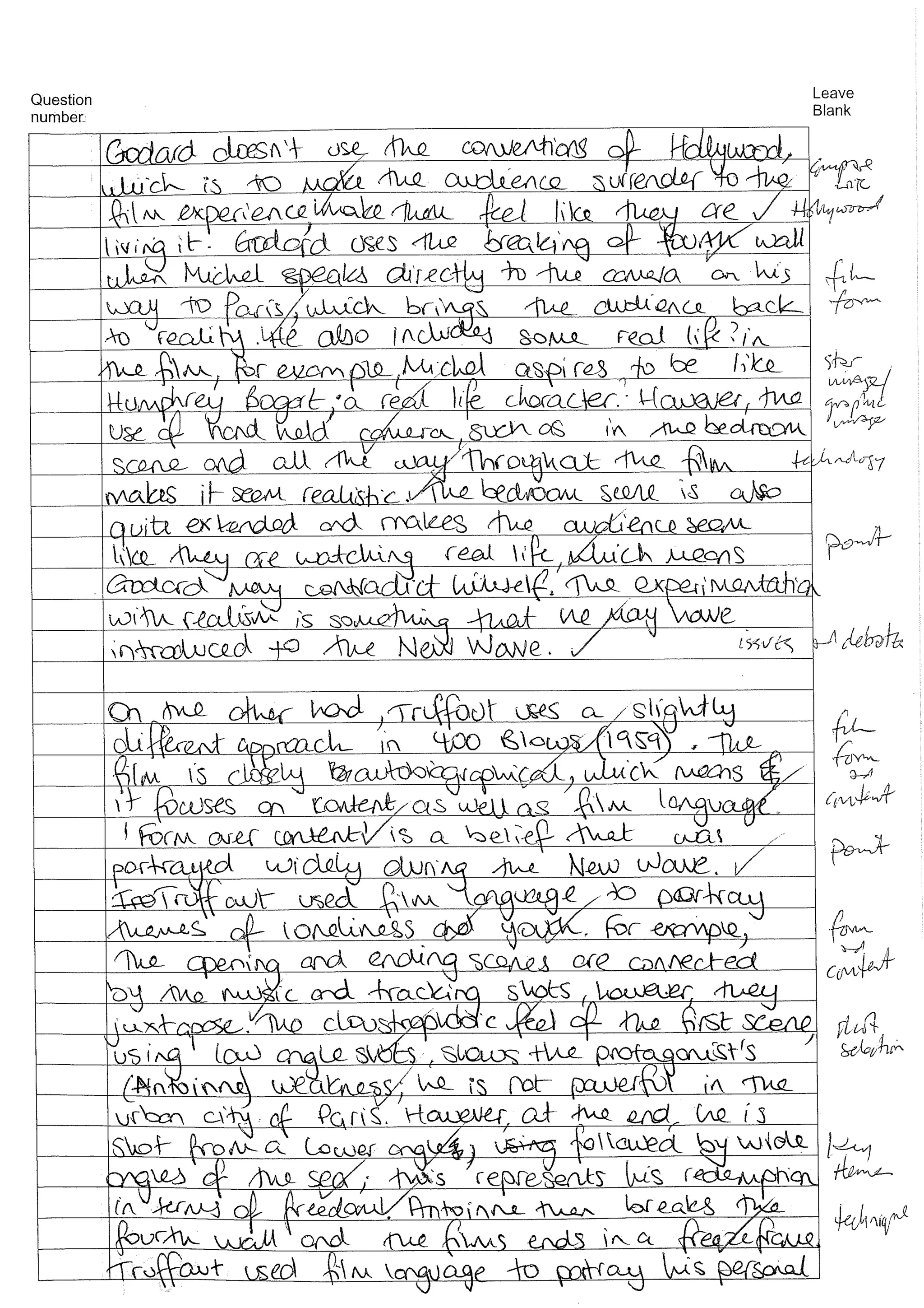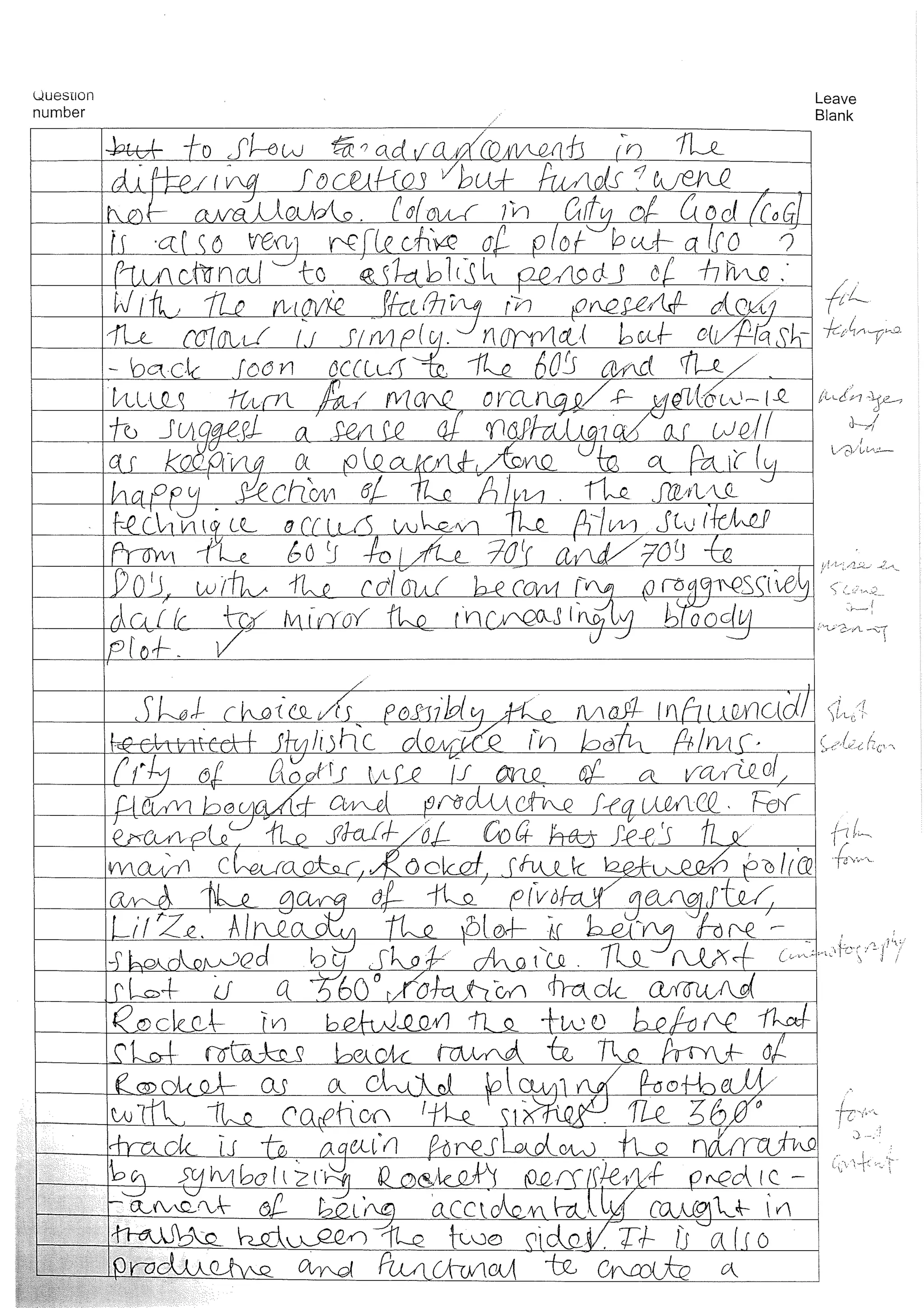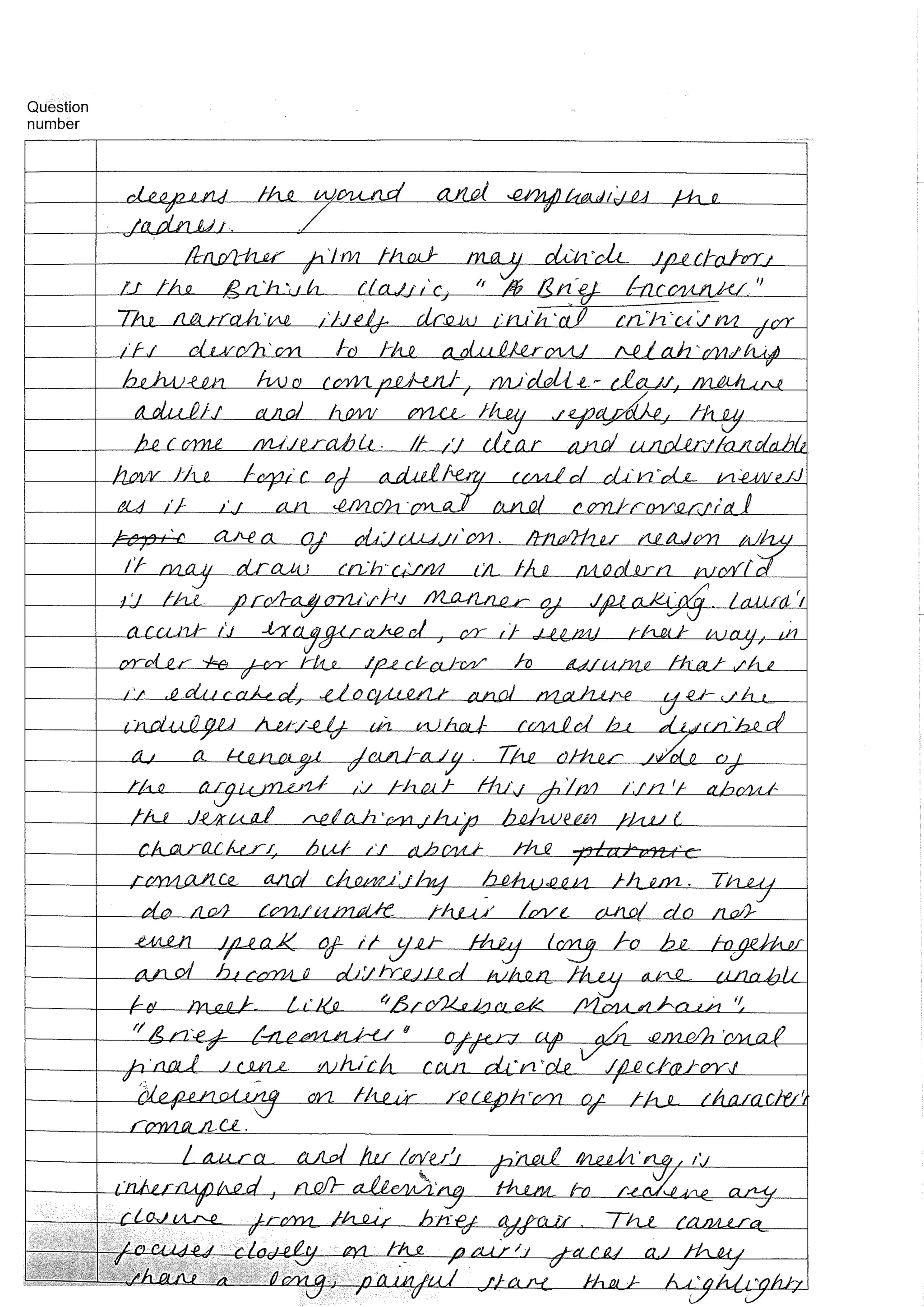 This document contains exemplar scripts from 8 candidates who took the GCE Film Studies exam. It provides a brief overview of each candidate's responses including the topics/films discussed in each section and their raw marks. The topics covered a wide range of film genres, movements and issues. Overall marks ranged from 86 to 96 and section marks were out of 35 for sections A and B, and 30 for section C. Grade boundaries for the exam are also provided.