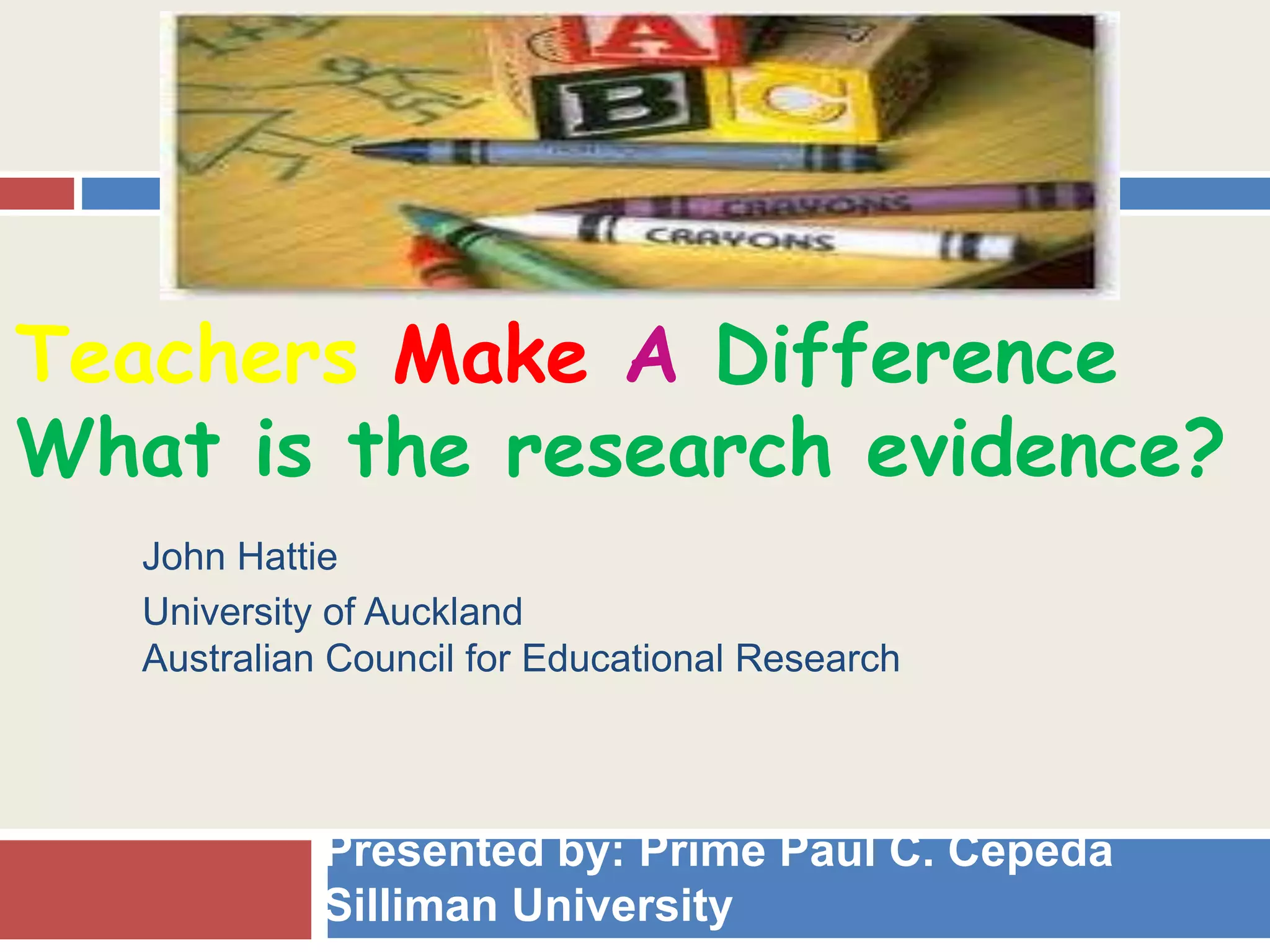 The document discusses a paper titled "Teachers Make A Difference" which aims to establish the profile of an expert teacher. It reviews literature on the influences on student achievement and identifies five dimensions of excellent teachers: identifying essential representations, guiding learning through interactions, monitoring learning and providing feedback, attending to affective attributes, and influencing student outcomes. The key finding is that teachers have the greatest impact on student achievement and expert teachers demonstrate attributes like challenge, deep representation, and feedback.