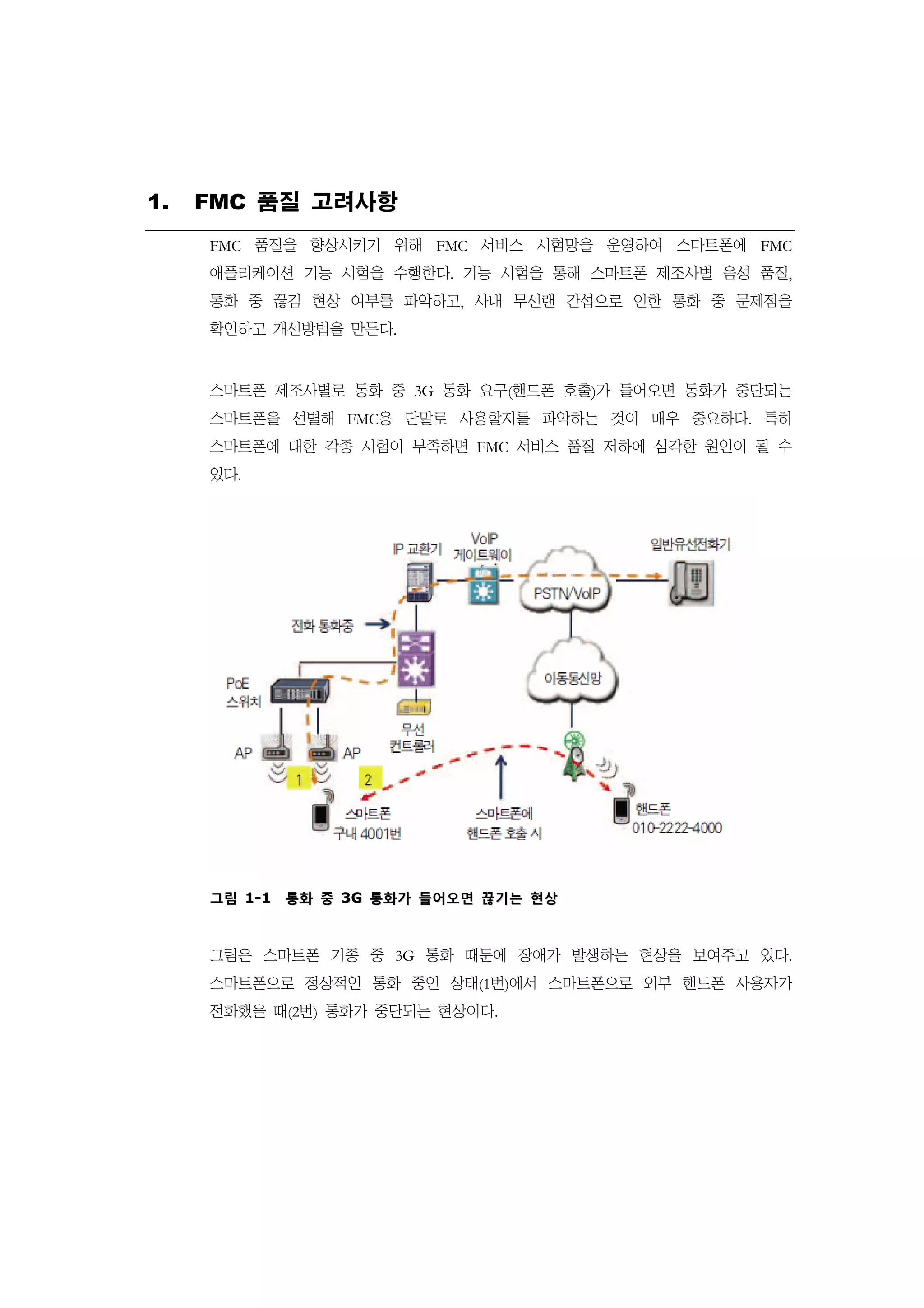 단말 모델별 FMC 음성 서비스 품질 시험을 한다. 이 시험의 결과에 따라 단말 모델을